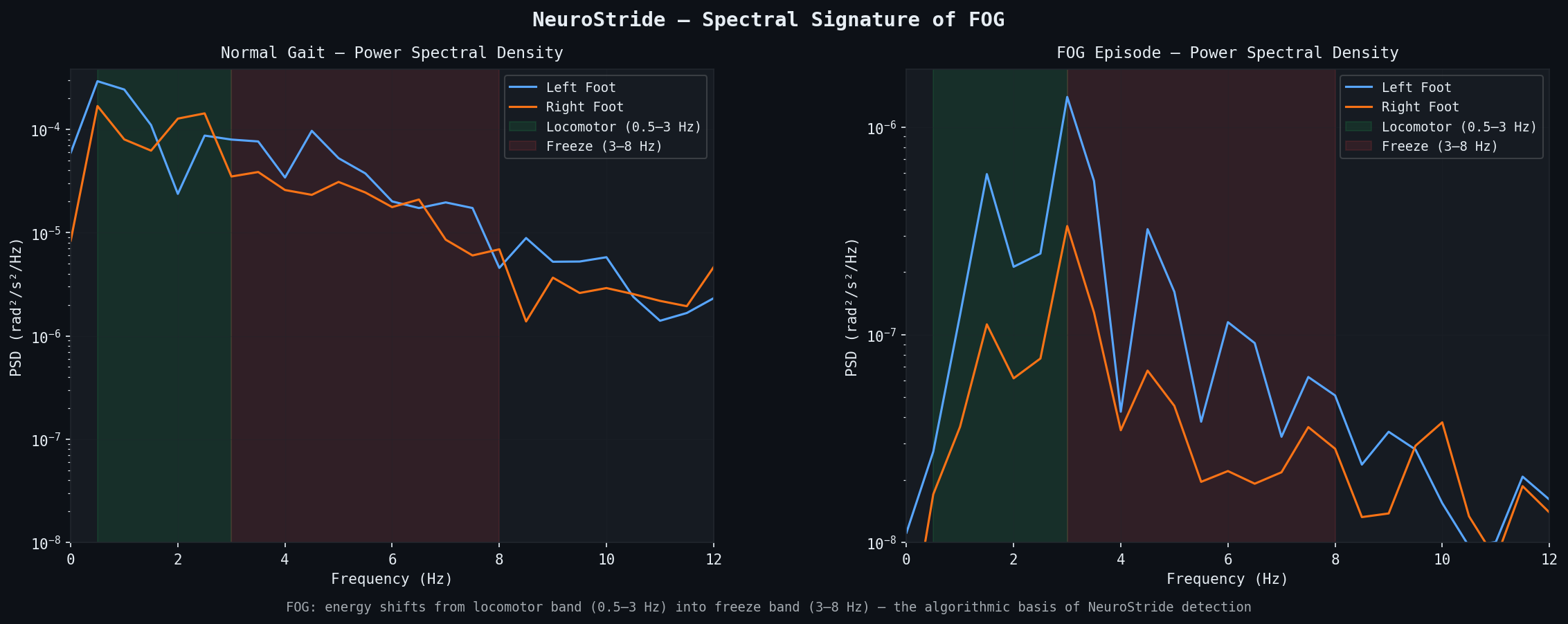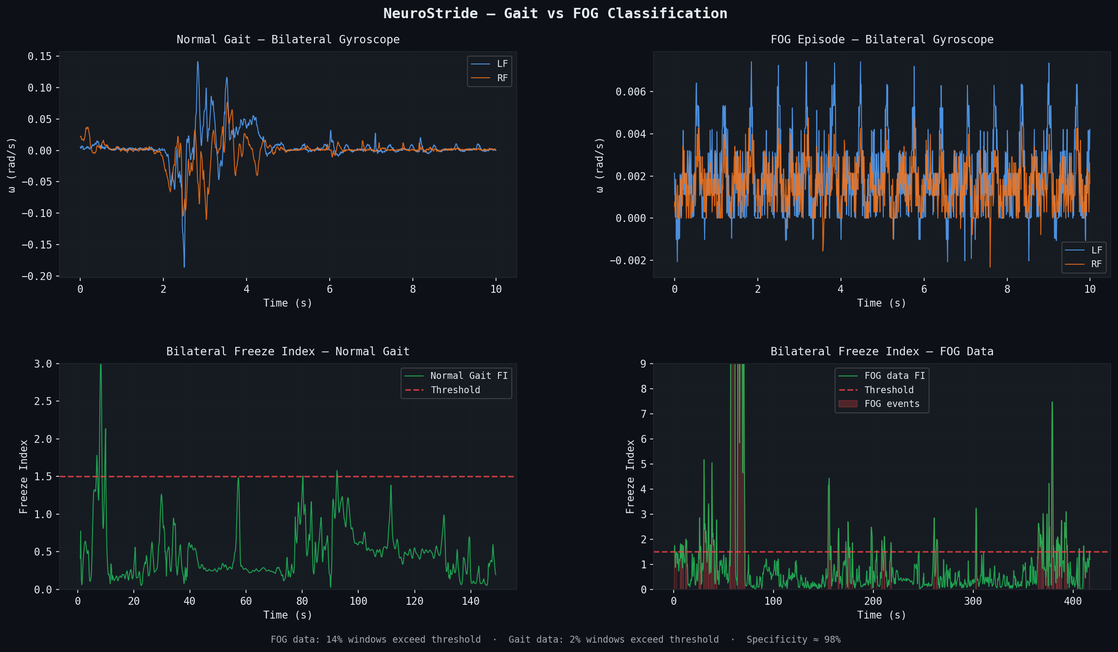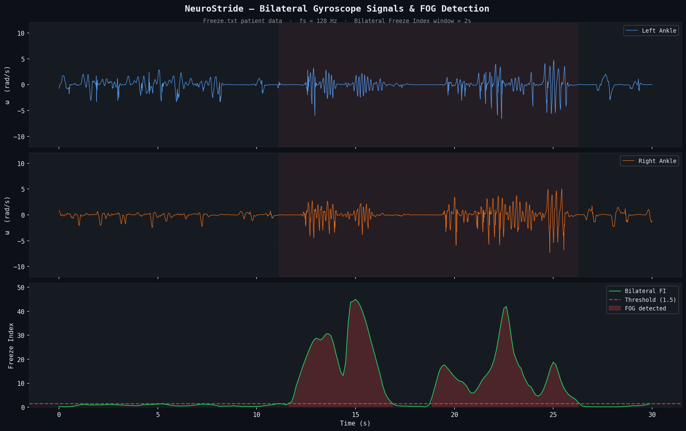 This project was inspired by my work in a neuromotor control lab, where I studied gait patterns in Parkinson’s disease and noticed that the normal left/right walking rhythm begins to break down just before a freezing episode. I built a Python-based signal processing pipeline that analyzes movement from both legs and detects this breakdown in real time, achieving sub-300 millisecond detection latency. A problem that I had fun experimenting with was distinguishing true freezing events from normal irregular movement. This all culminated in a working prototype that can detect freezing before it occurs; if you have any further questions, please see the proposal in the additional materials section and reach out with any further questions.