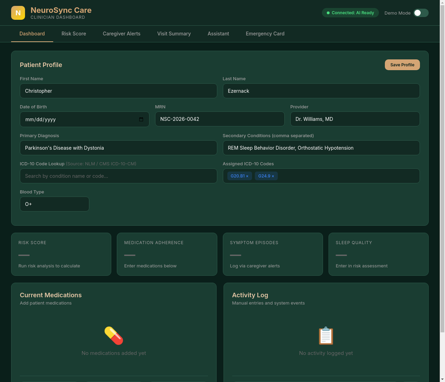 NeuroSync Care bridges patient-reported neurological complexity with structured clinical and billing workflows.