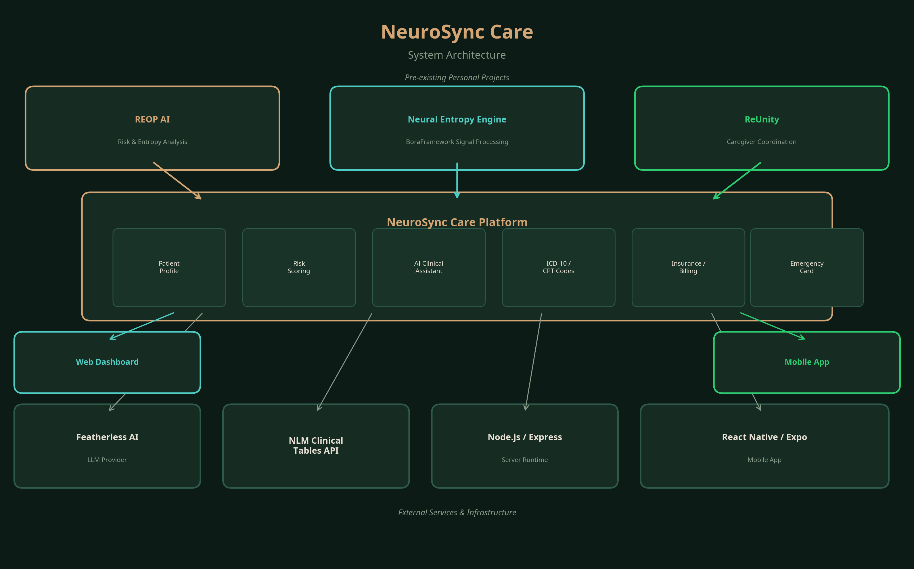 NeuroSync Care unifies three existing projects into one system: