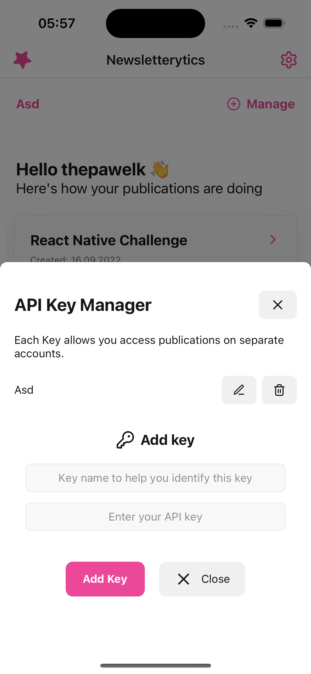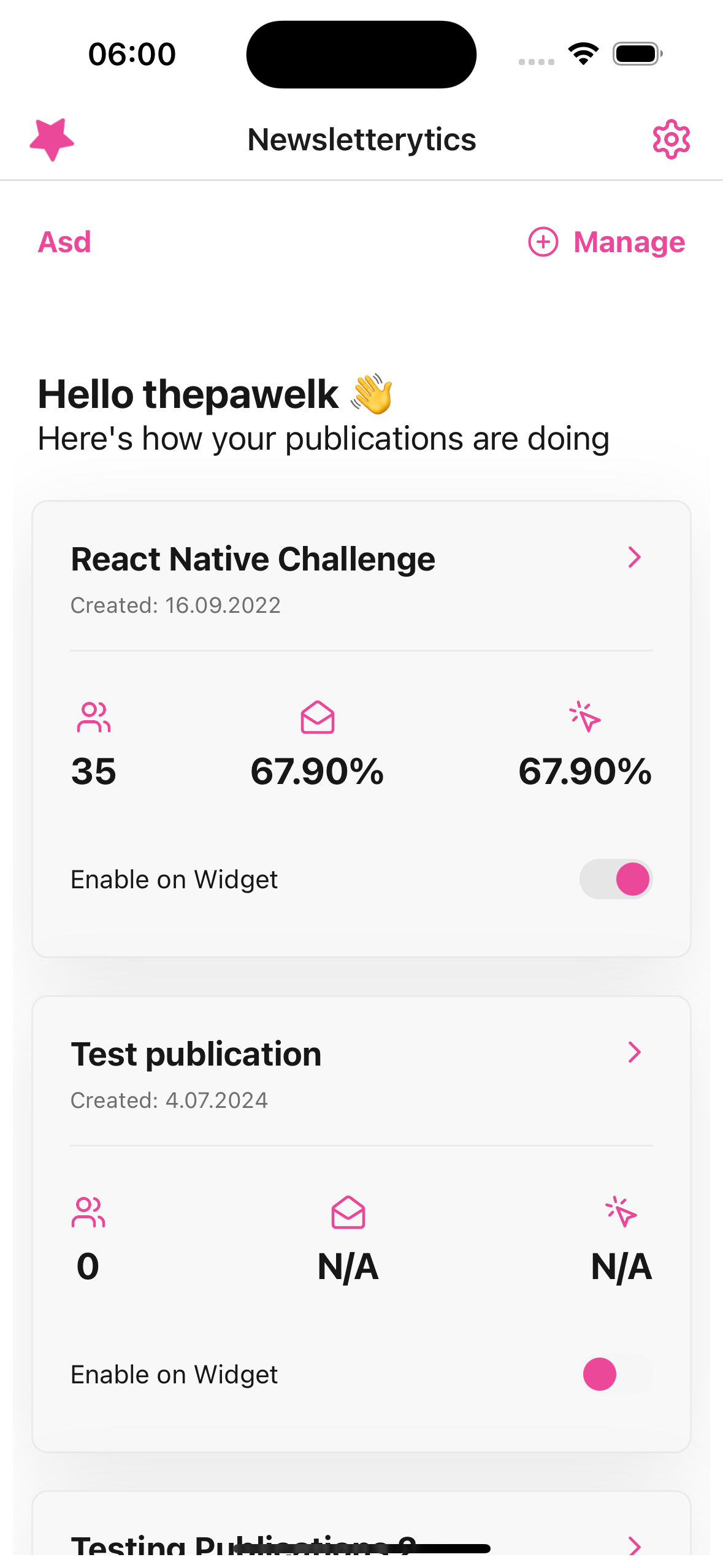 The app allows you to connect your newsletter through an API key and display your general statistics for your newsletter and premium users get access to a newsletter widget to help them track their stats without even opening the app.