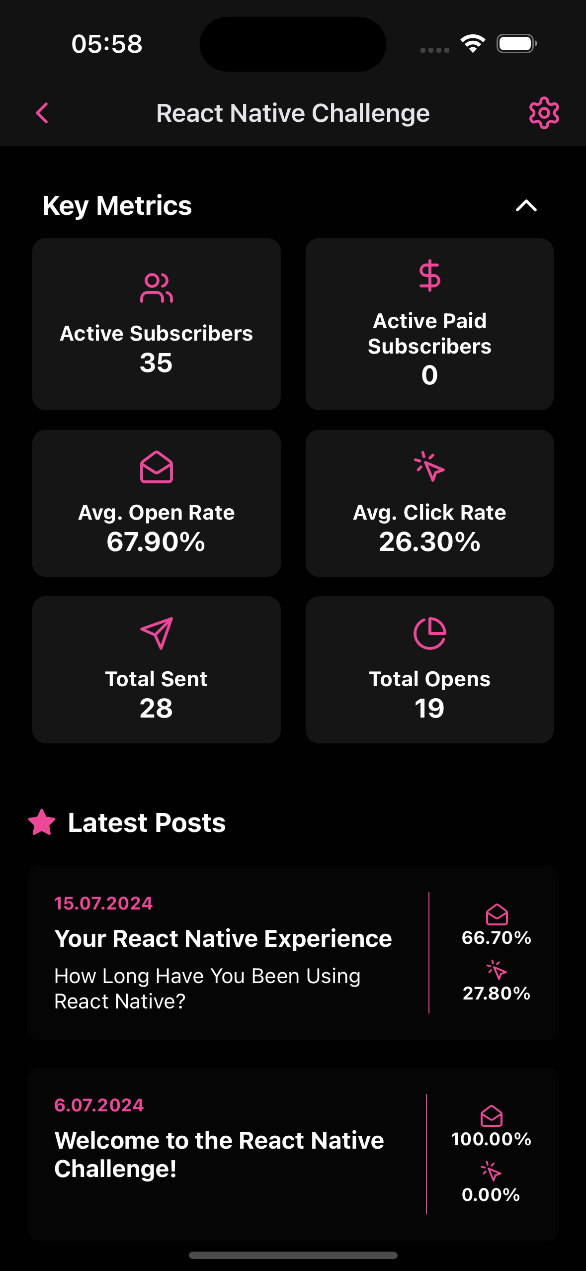 I've been wanting to start a newsletter for a long time already, but have never really got to starting one (yet). Finally, I found out about the Beehiiv product and everything clicked for me, it's polished and helped me understand the newsletter game. I signed up for it and set everything up for the newsletter I thought about for some time already and then I realized they have a very nice API and they don't have a mobile app, so I started building one. I didn't want to build just a simple CRUD mobile app, for the past few years, I saw a ton of nice social widget trackers so I thought I'd build one for the Beehiiv mobile app too.