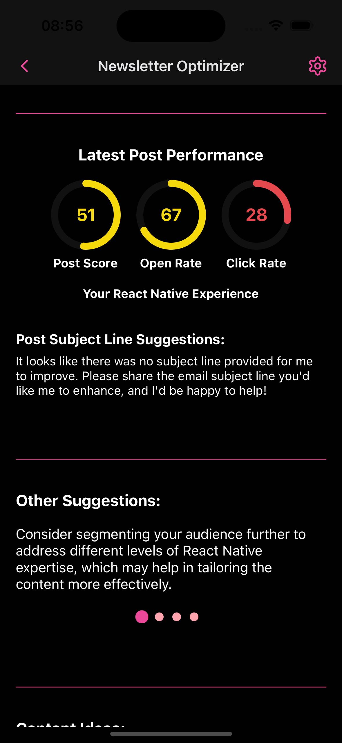 Newsletterytics is just in the MVP phase, there's still a ton of work to make it a fully working mobile experience for Beehiiv newsletter. Anyone interested in helping me decide what features to add, I recommend visiting the Insighto dashboard and add or vote. https://insigh.to/dashboard/66c5718beeb7c71ba90d2b04