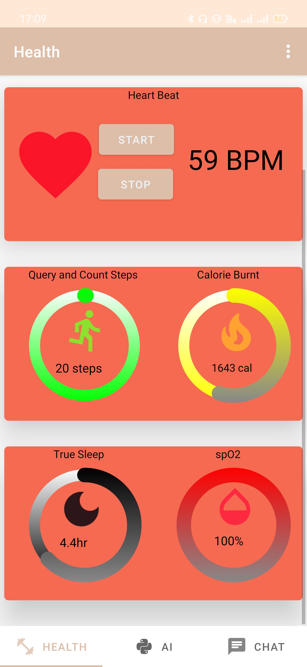 4. Optimized dashboard for user to keep tab on their health.