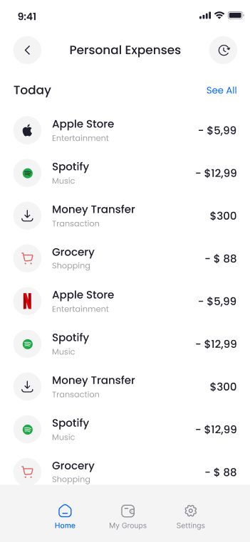 Our biggest challenge was designing simple flows for different scenarios (groups, tabs, and personal finance) without losing clarity. It was also challenging to define consistent logic for splitting costs and tracking balances over time while keeping everything transparent for all users.