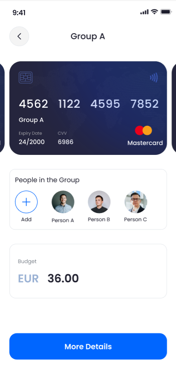 - Group virtual cards: dedicated virtual cards per group to keep spending organized by context.