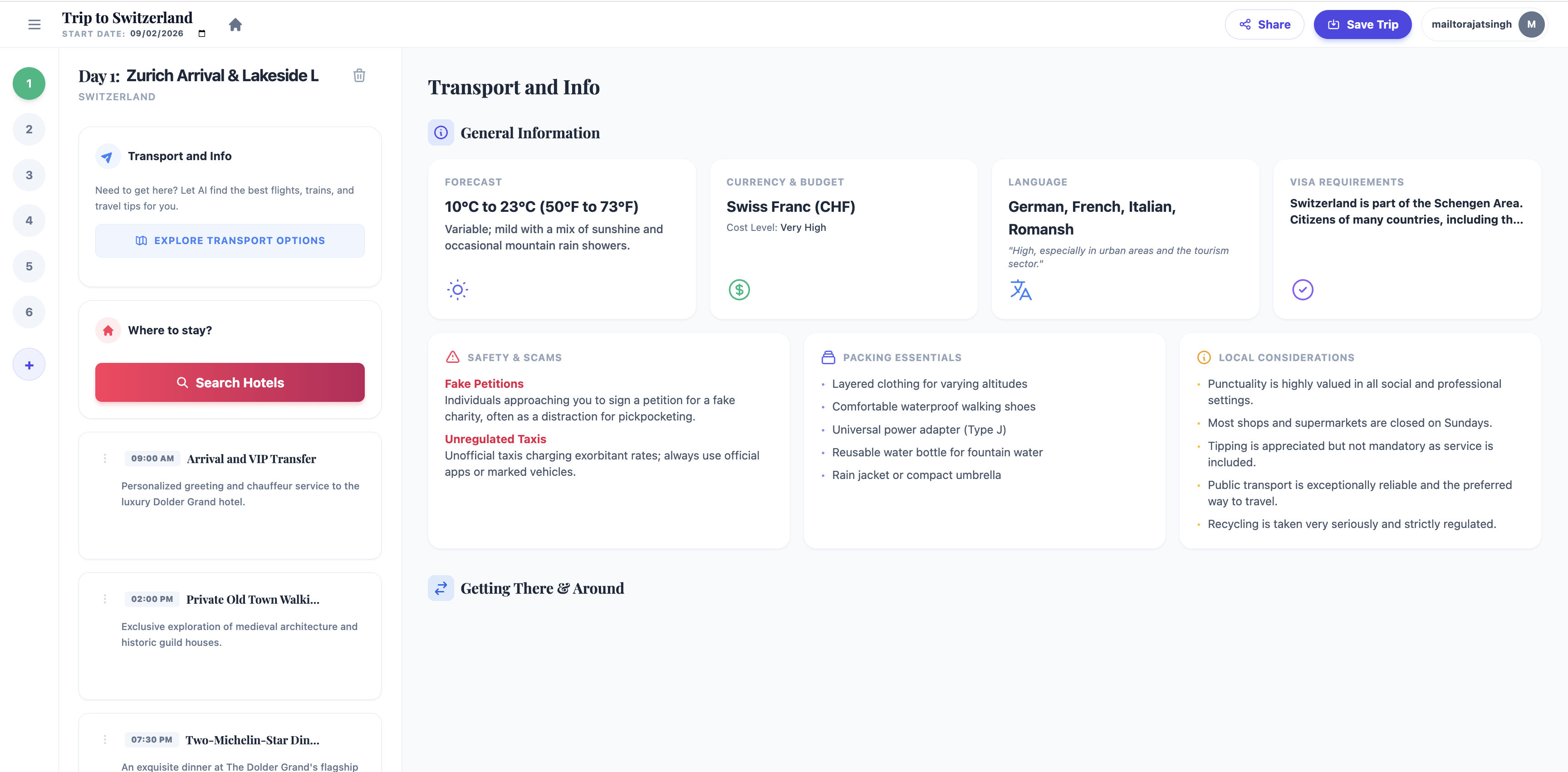 The vision and product ideas came from me, while Gemini played a central role in turning those ideas into reality—from AI-assisted trip planning to intelligent itinerary generation and decision support. This close collaboration between human intent and Gemini’s capabilities allowed me to move fast, iterate effectively, and build a meaningful real-world solution.