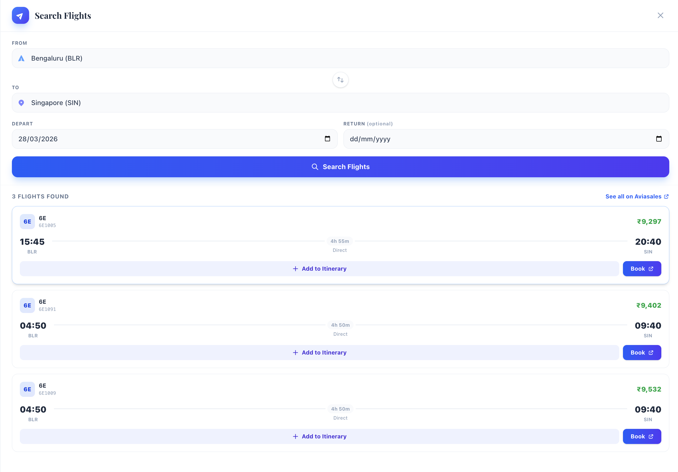 A clean, interactive itinerary builder where AI and humans collaborate seamlessly A design that keeps complex travel data understandable and actionable Combining maps, AI suggestions, weather insights, and safety information into a single experience Apart from this the biggest Learning was also how one we can effectively use AI Editor Like Antigravity