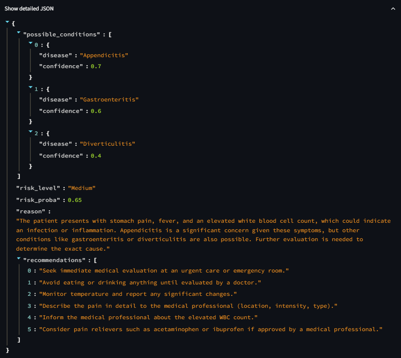 Backend & AI: The core logic is written in Python. We engineered a deterministic safety layer that first scans all inputs for "red-flag" emergency keywords. If no emergency is found, a generative AI (Google's Gemini), managed via the LangChain framework, performs a nuanced assessment.