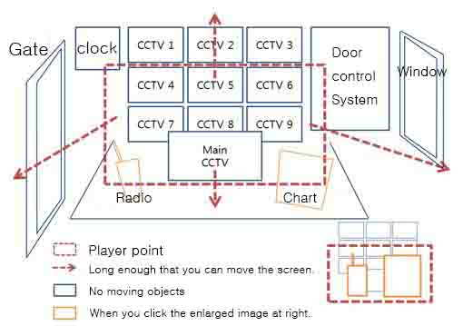 In this game, the character(player) doesn't move by himself but as a security gaurd, observes CCTV monitor and commands orders to nurse(NPC).