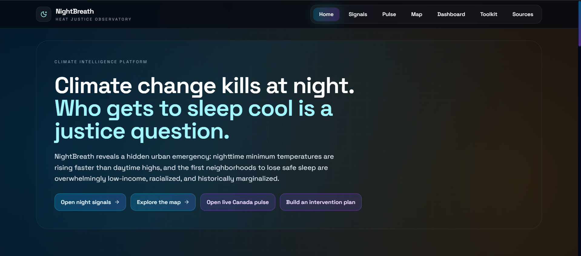 NightBreath was built with urgency, care, and the belief that climate adaptation must center the people most at risk ; not as an afterthought, but as the starting point.