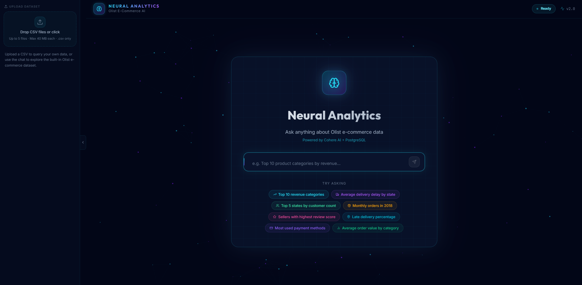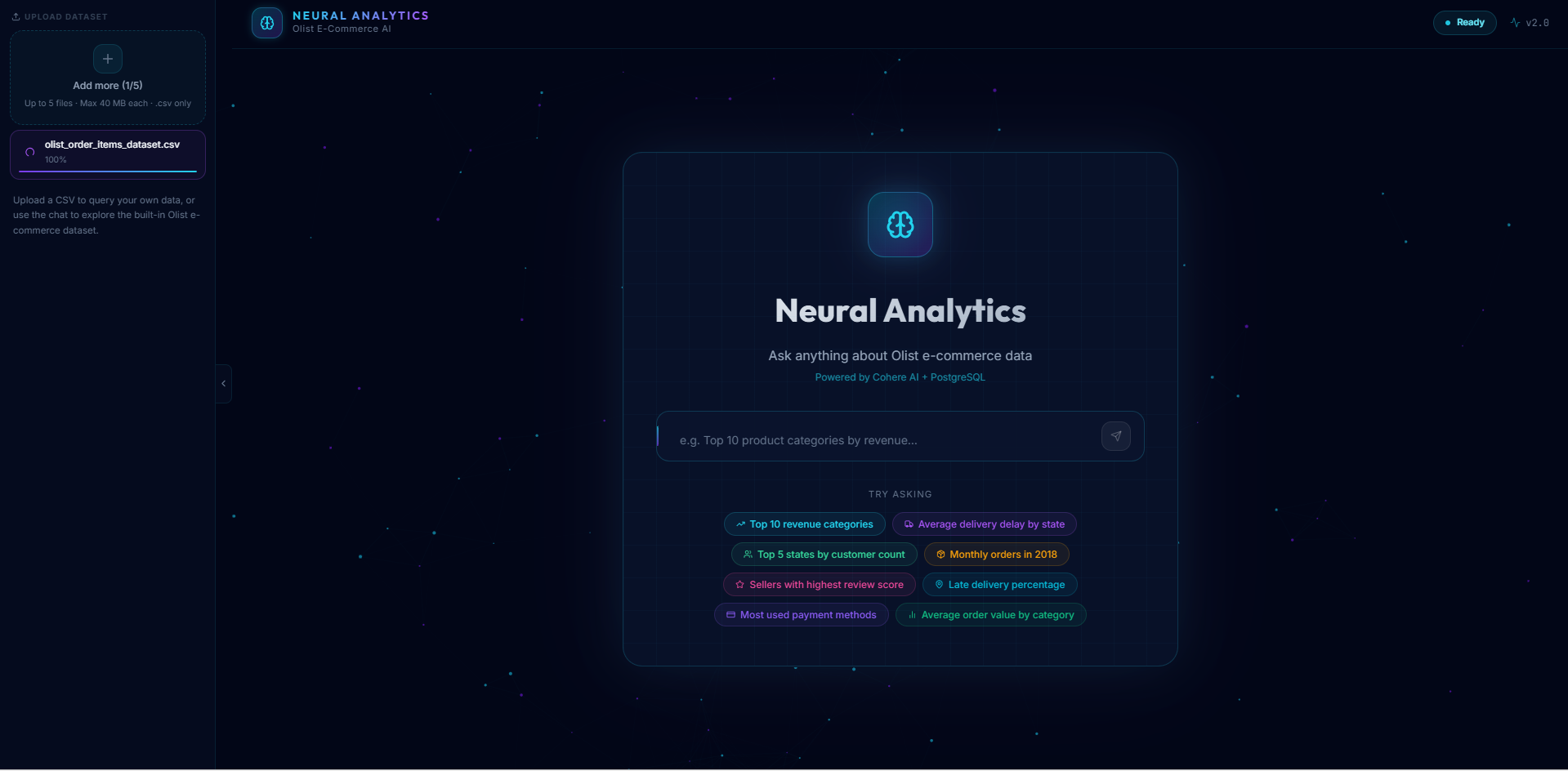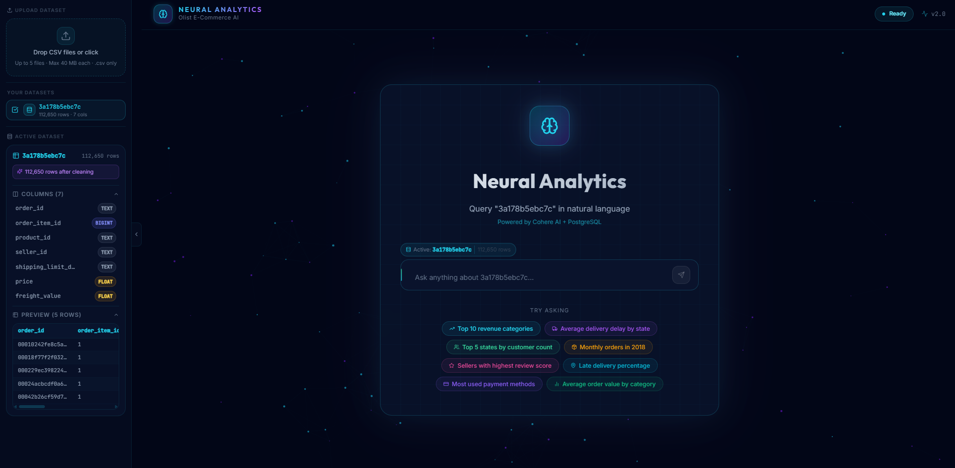 Neural Analytics is an AI-powered data exploration platform that lets users: