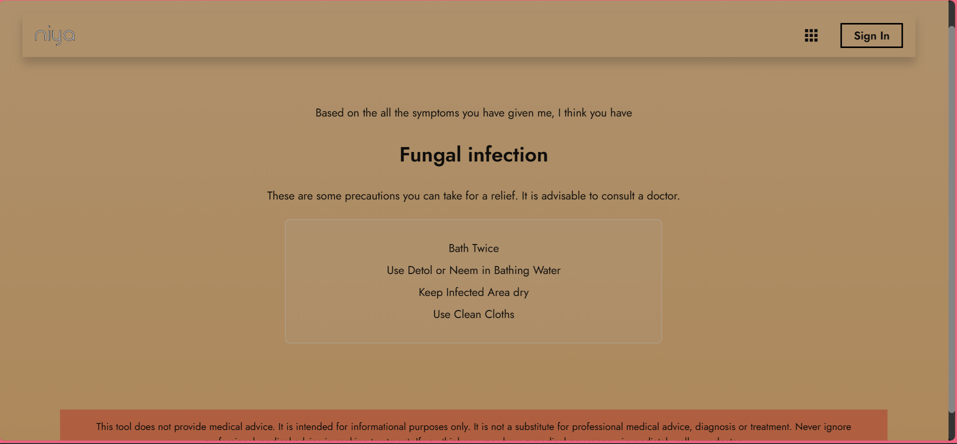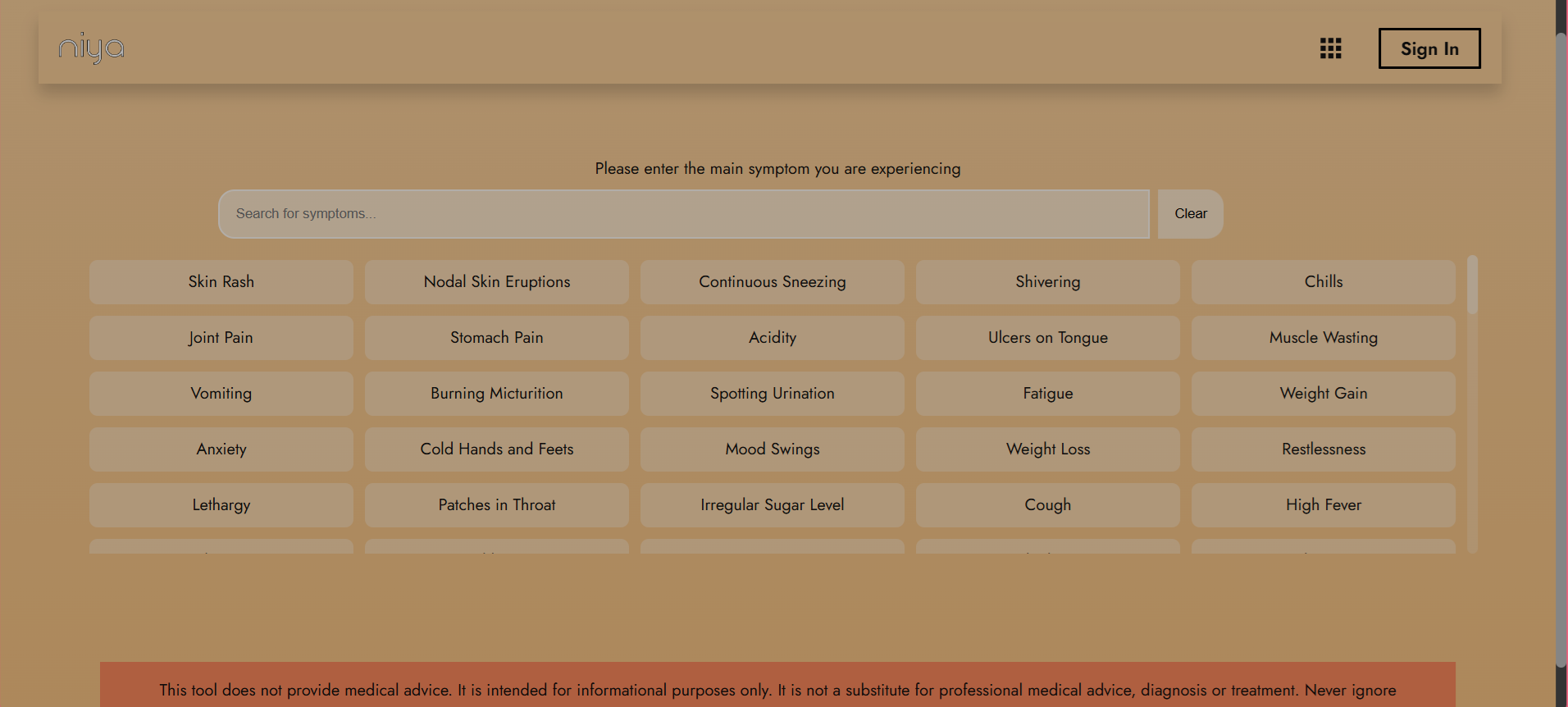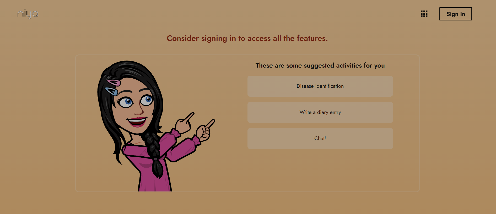 Niya was inspired by the growing need for accessible health management tools that cater to both physical and mental well-being. Observing friends and family struggle with health-related challenges sparked the idea of creating a comprehensive platform that integrates technology with self-care. Extremely many people faced a lack of self-assessment of themselves; a significant number had unfulfilled symptoms as they mostly forgot to analyze their feelings and emotions at different periods. The common tendency to take care of mental problems along with other diseases opened the way to need help through some tool in life.