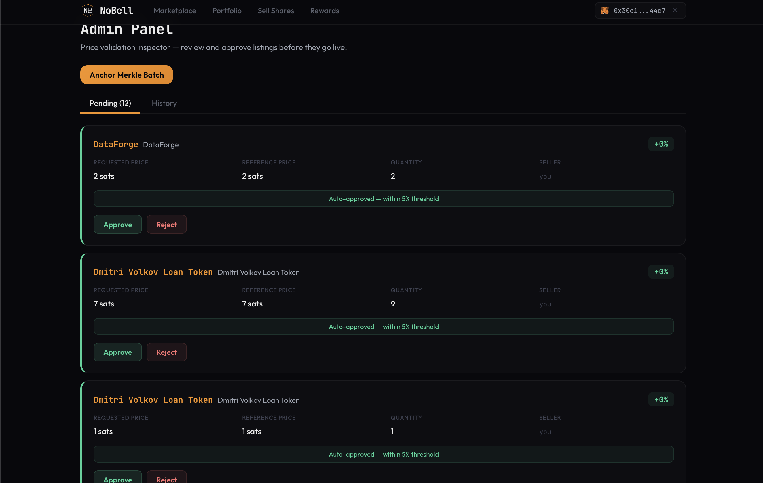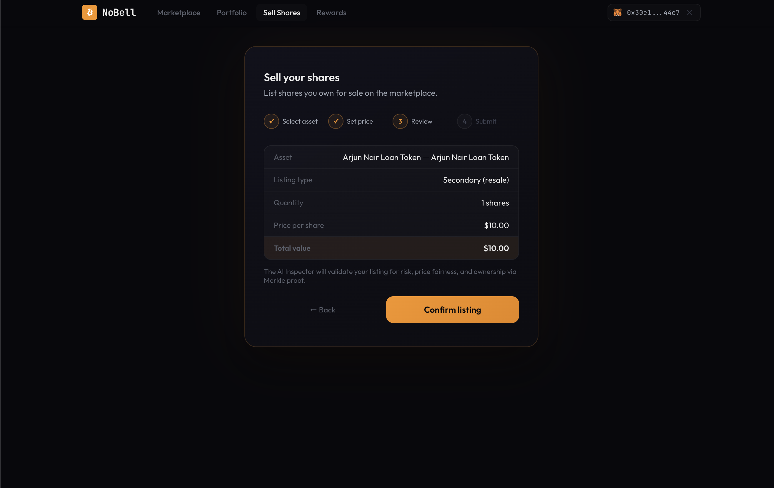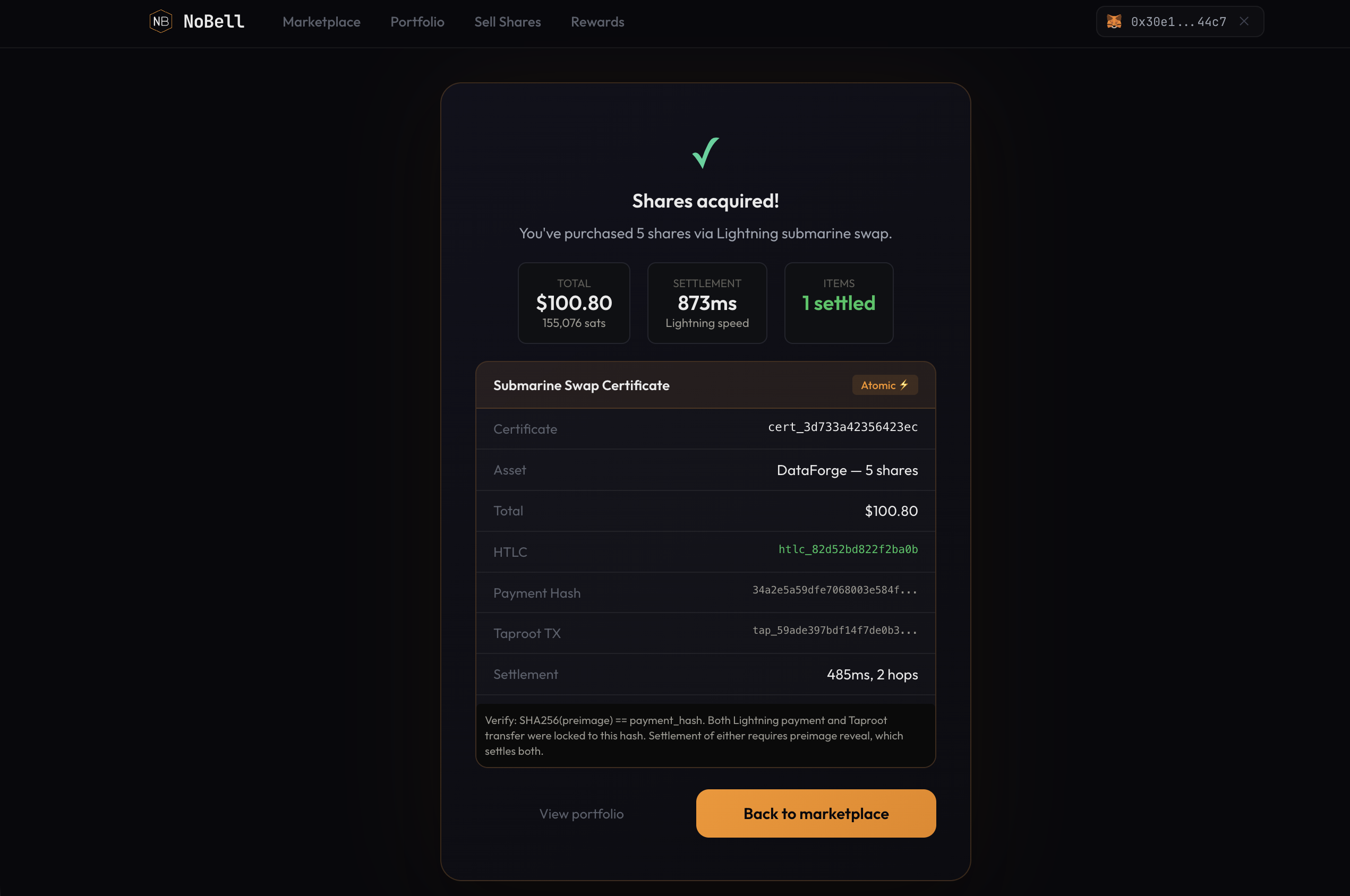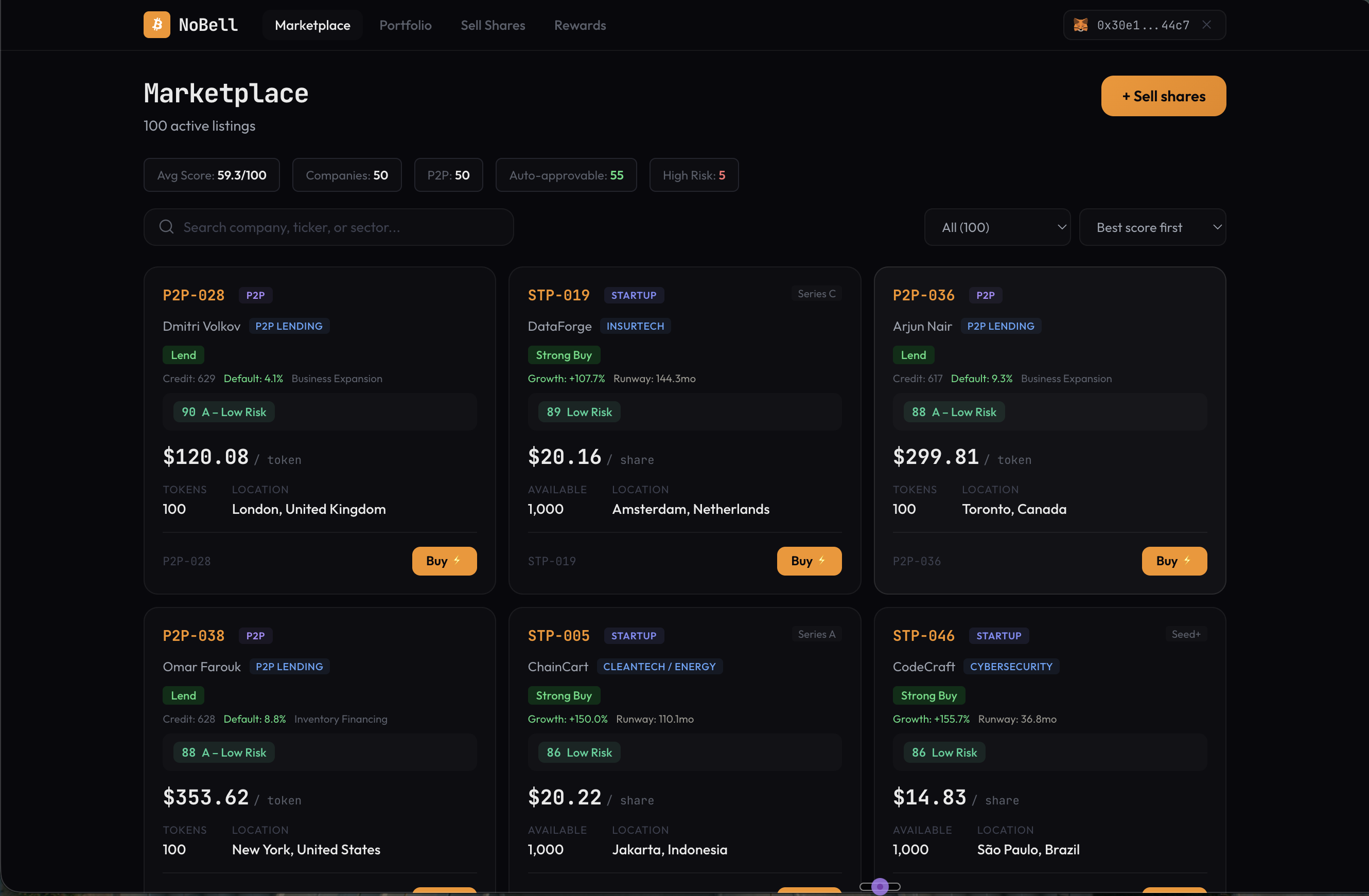 NoBell is a decentralized, peer-to-peer equity marketplace built on Bitcoin. It lets startup shareholders tokenize their shares using Taproot Assets — a Bitcoin-native protocol — and list them for sale directly to investors, with no banks, lawyers, or middlemen.