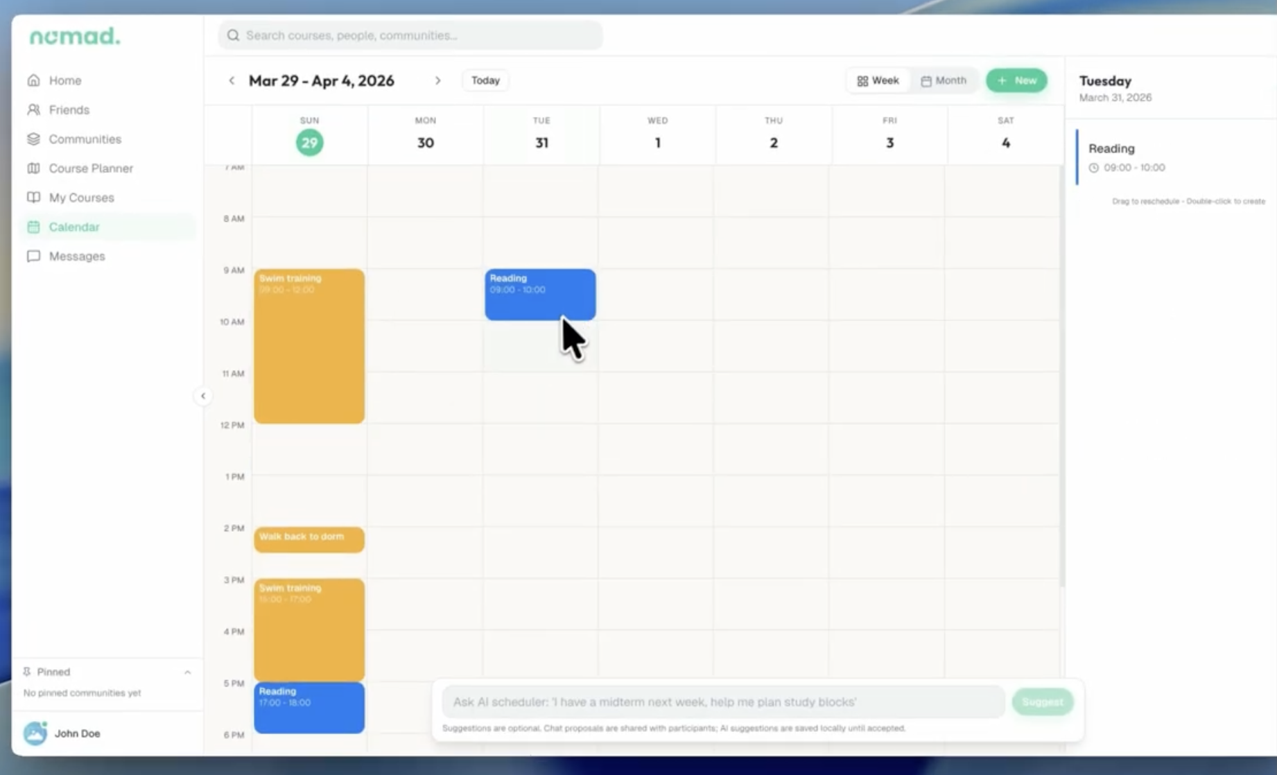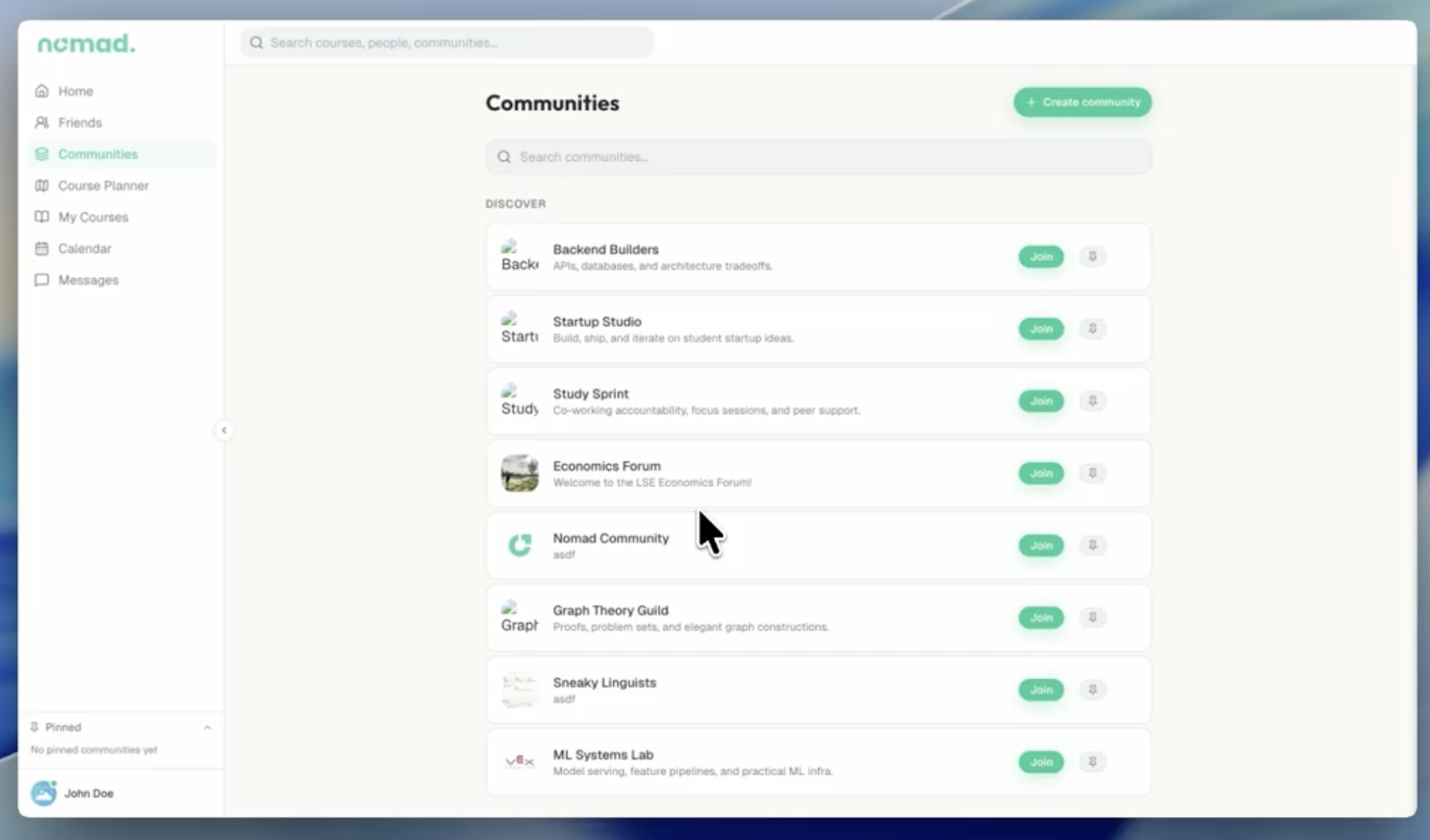Nomad is a student platform that integrates academic planning, social networking, and communication.