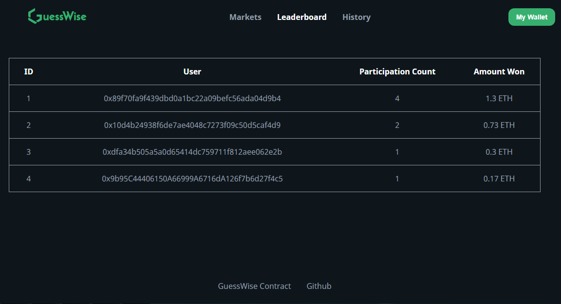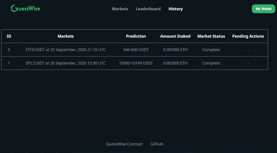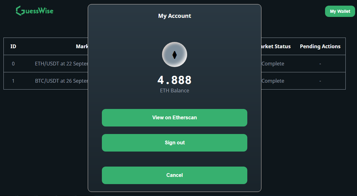 GuessWise is a platform for prediction markets using the chain link Price feeds. This will make use of the Chainlink's aggregator contracts on-chain to create markets, at a time to be forecasted at(based on aggregator's heartbeat).