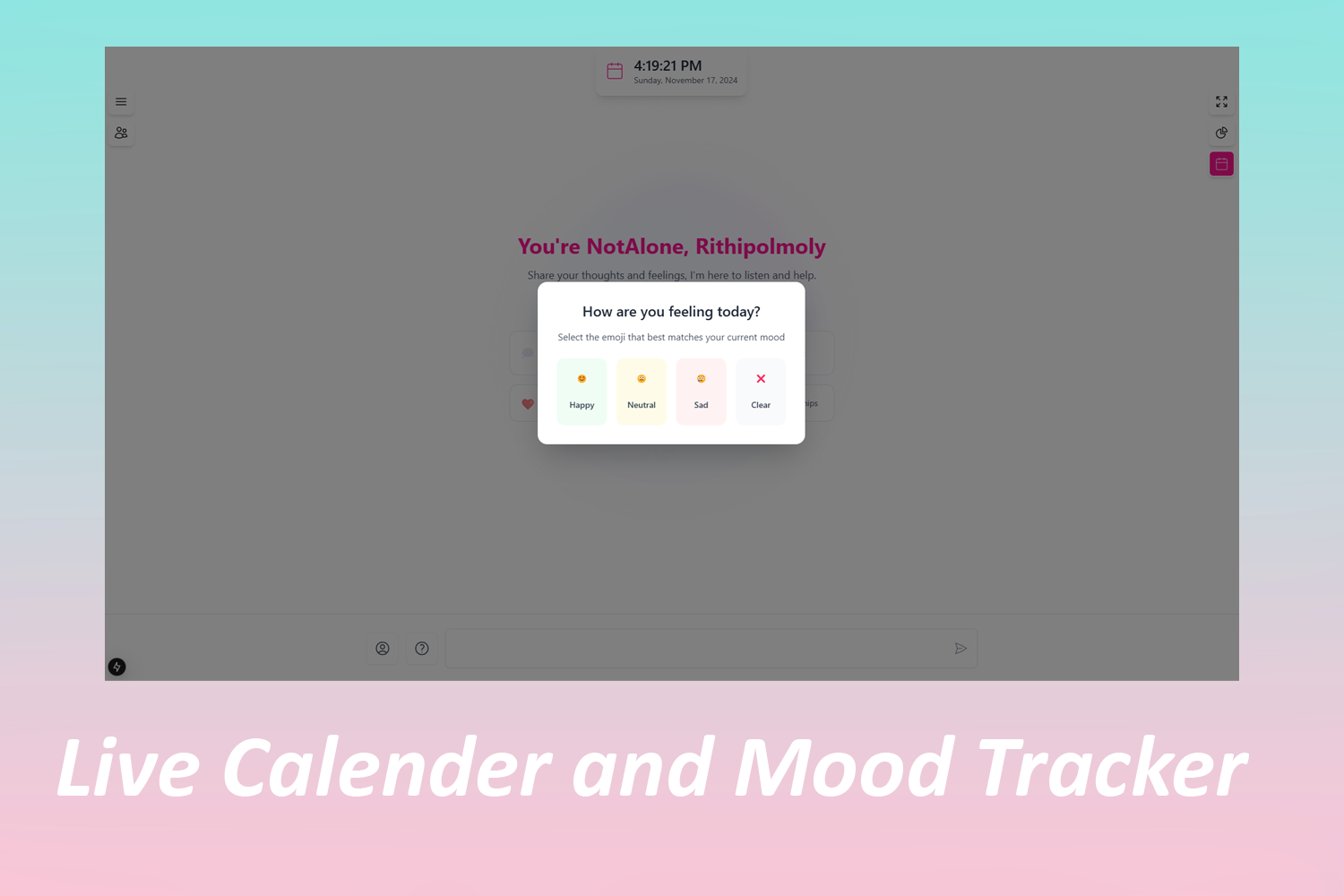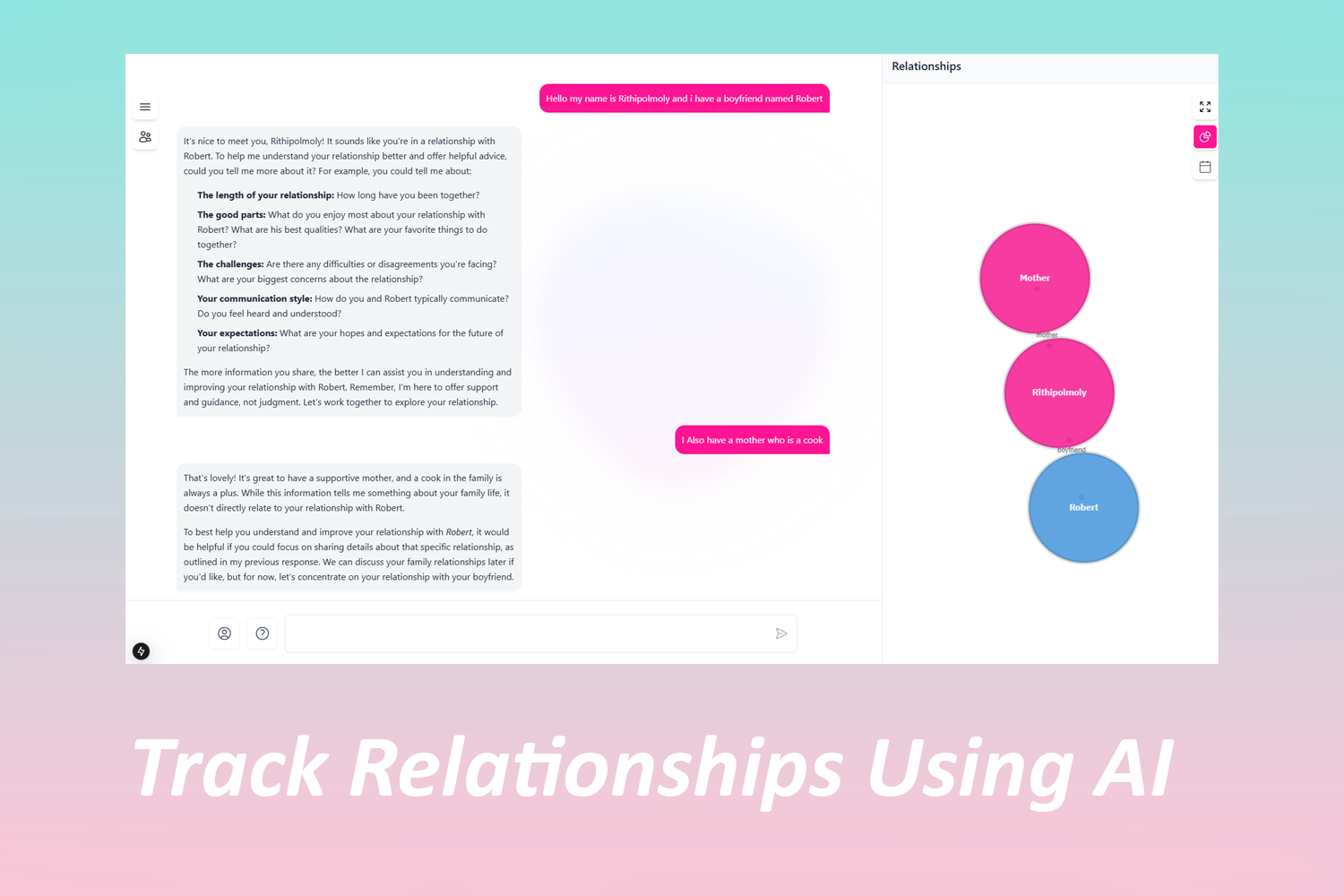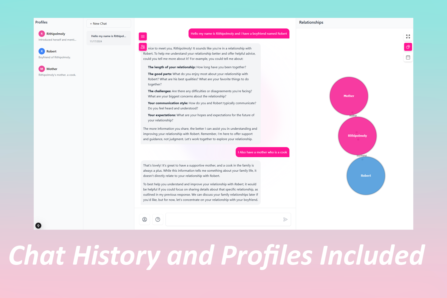 - Interact with an empathetic AI chatbot that functions as a daily relationship journal