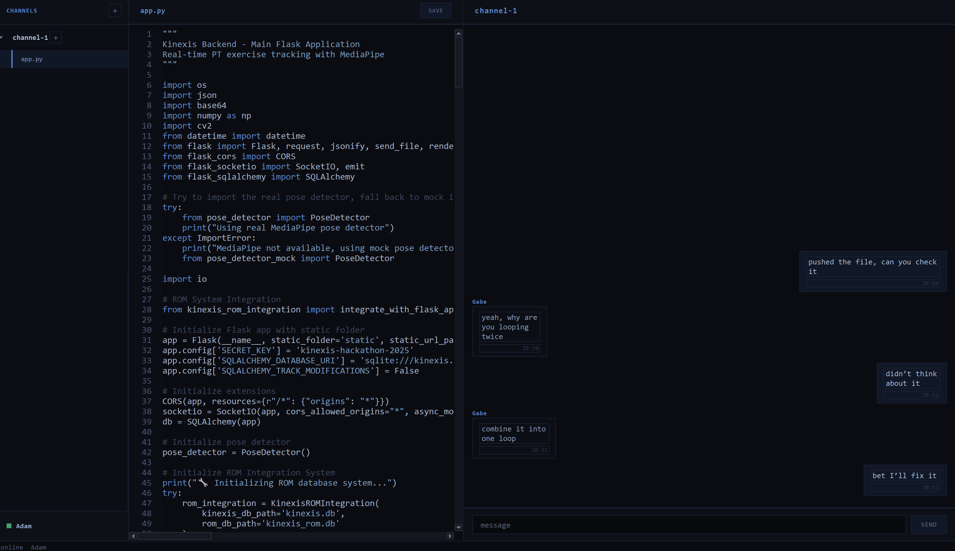 One of our biggest accomplishments was building a system that supports real time collaboration. Users can connect with each other, view changes to code instantly, and communicate all within the same space. Bringing all of this together into one smooth experience was a major milestone for us.
