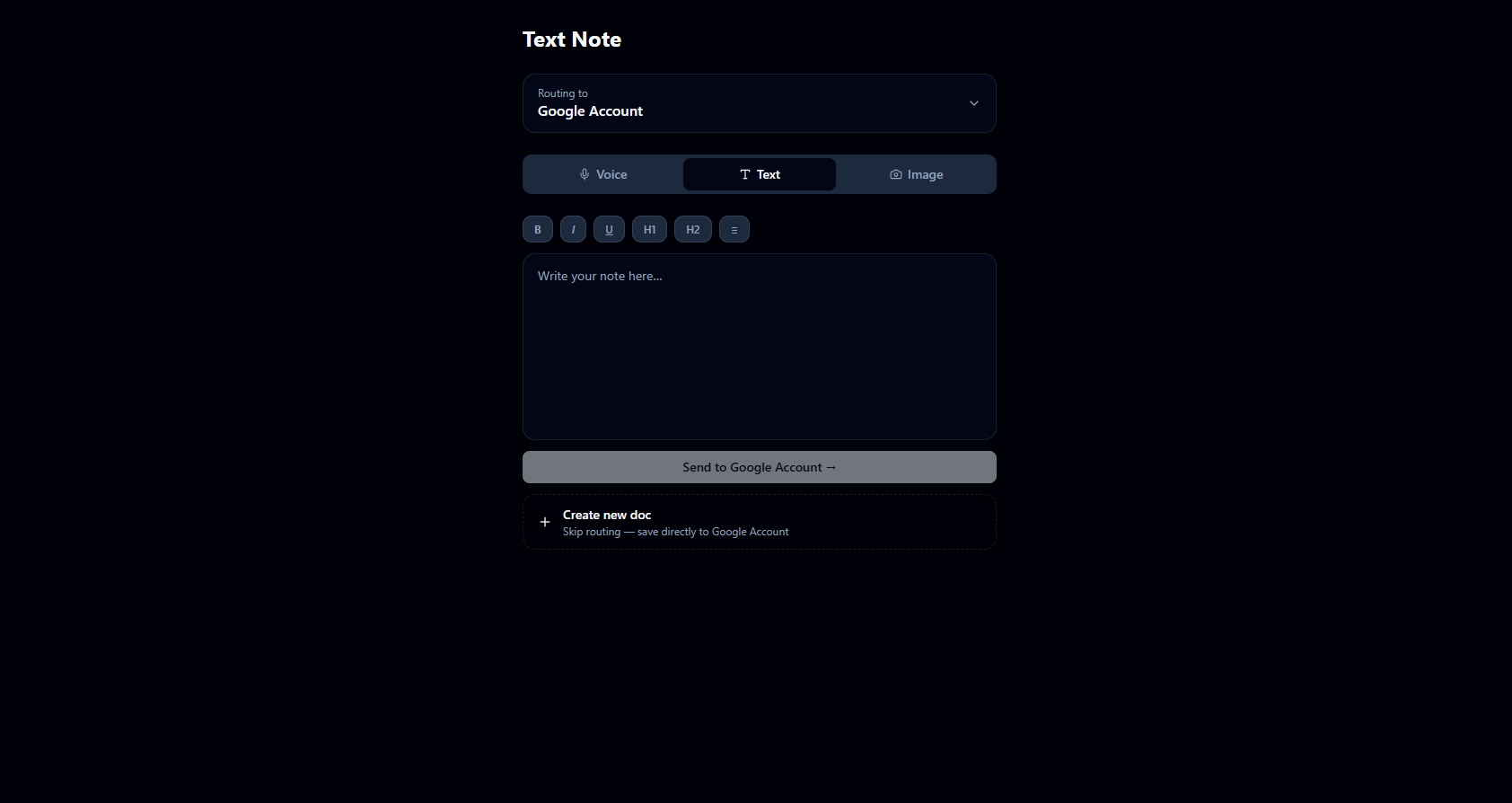 NoteRoute lets you say it, snap it, or type it — and routes the content to the right destination automatically.