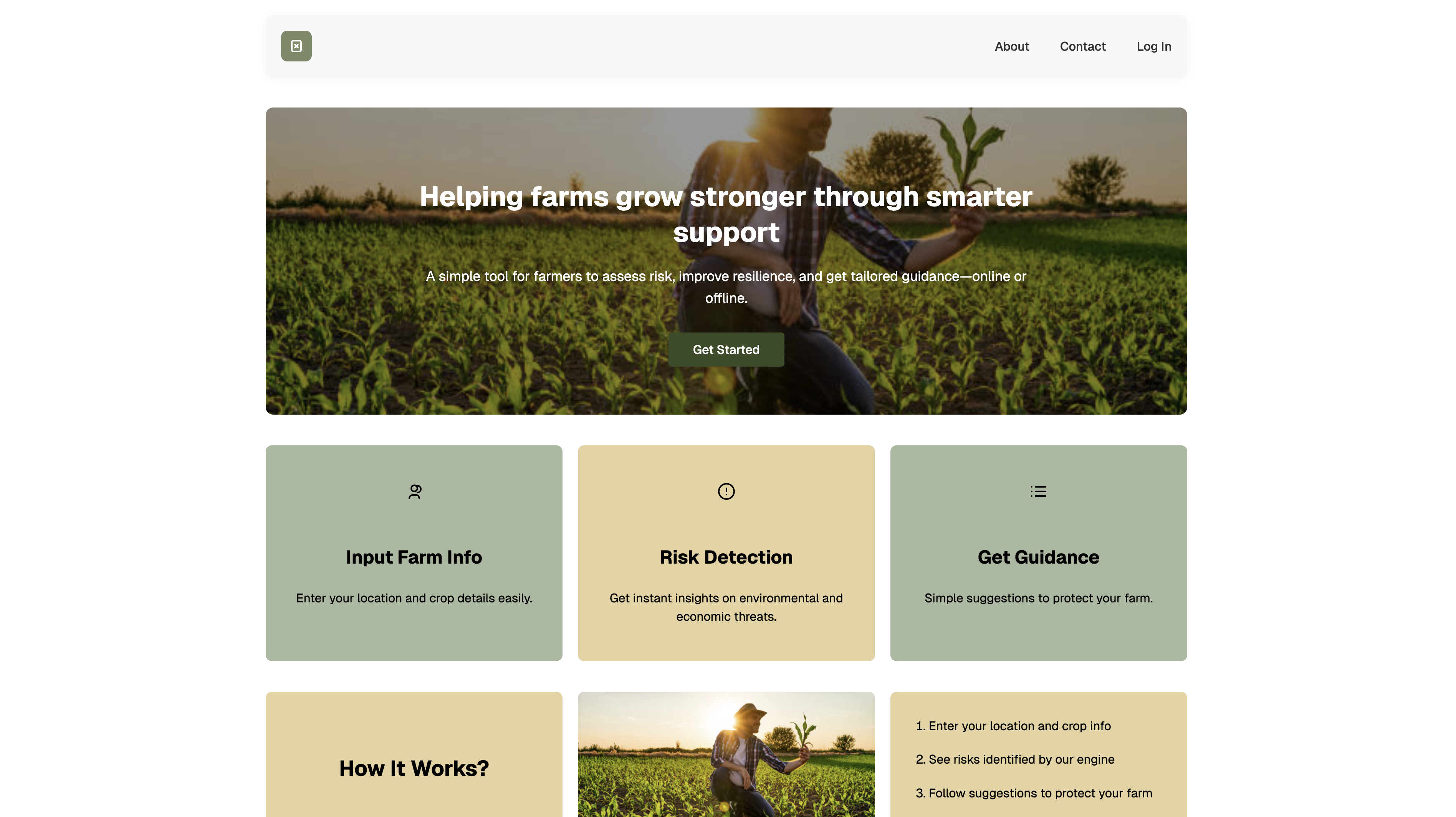 Our platform utilizes a tech stack combining Next.js with React and CSS on the frontend, ensuring a responsive and intuitive user interface. On the backend, we used Firebase (Firestore) with TypeScript to efficiently handle data storage and retrieval. Location-specific climate data was integrated using third-party APIs from Google Maps, Free Weather, and OpenMeteo. The machine learning component, responsible for generating risk assessments and crop recommendations, is built using a linear regression model implemented with scikit-learn.