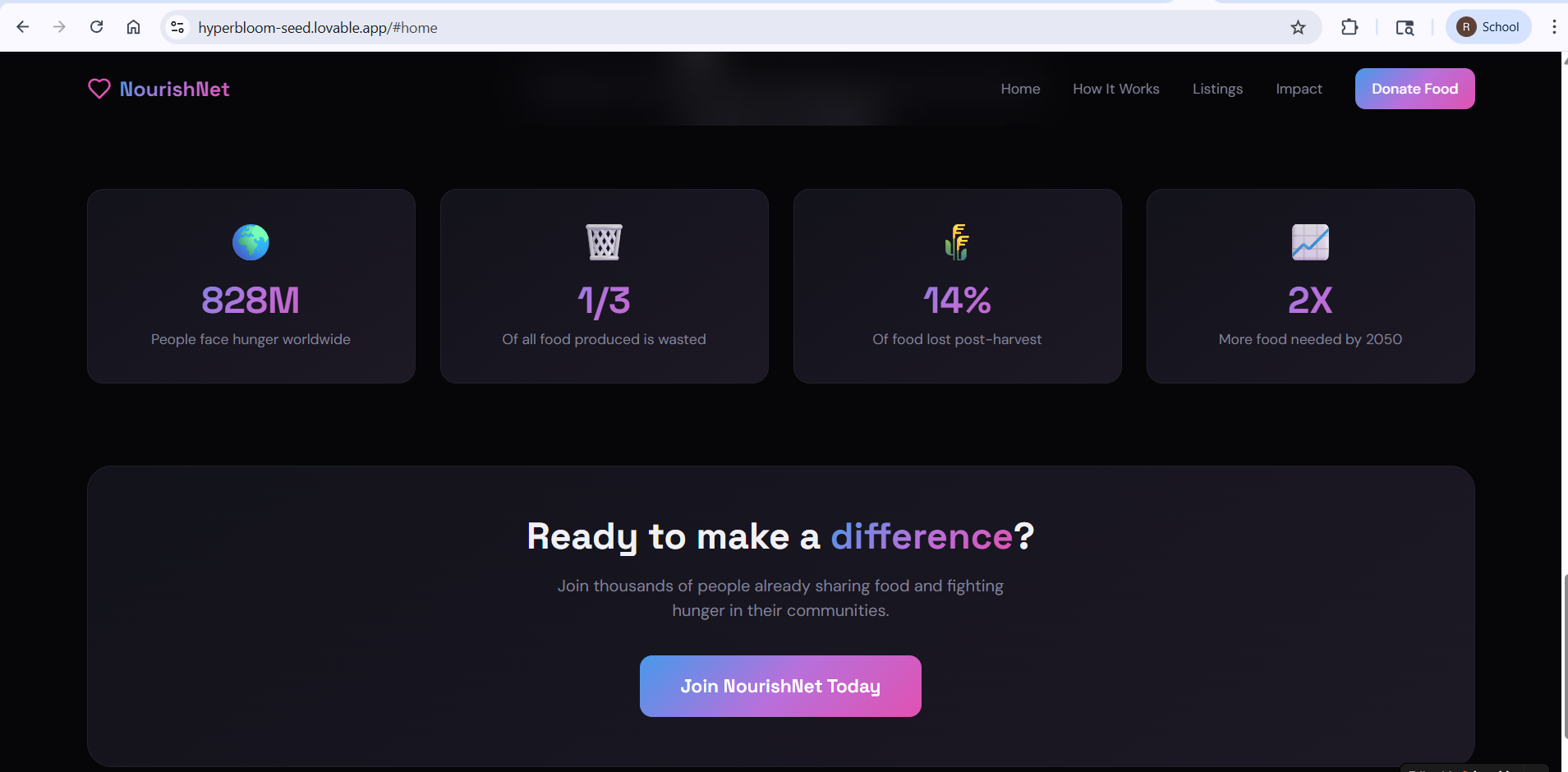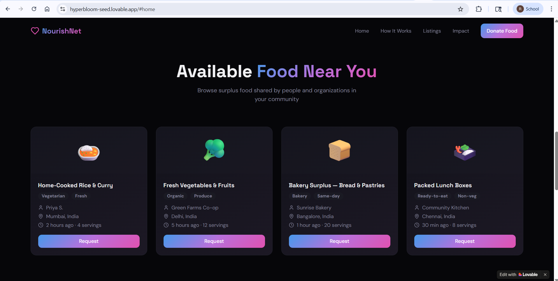 Every day, huge amounts of edible food go to waste while millions struggle to get a single meal. This imbalance motivated us to build a community-driven solution that connects donors and recipients efficiently.