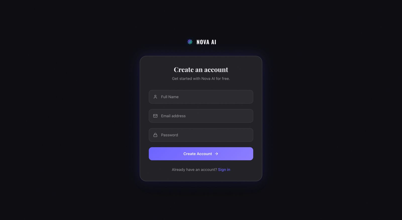 When you land on Nova AI, you're greeted by a stunning 3D hero scene — not a generic landing page. The interface uses glassmorphism, subtle animations, and a dark-mode-first aesthetic that feels premium from the first pixel.