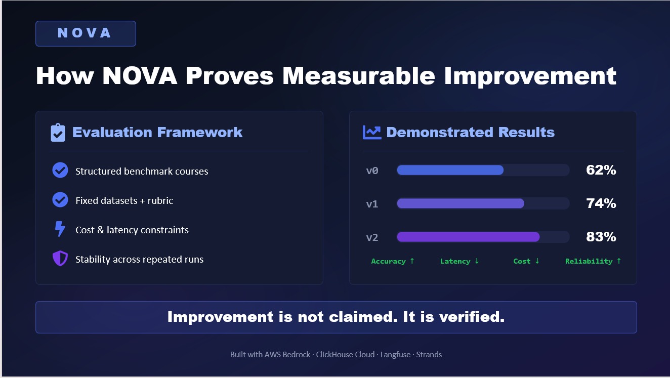 NOVA transforms static agents into statistically validated, self-improving systems.