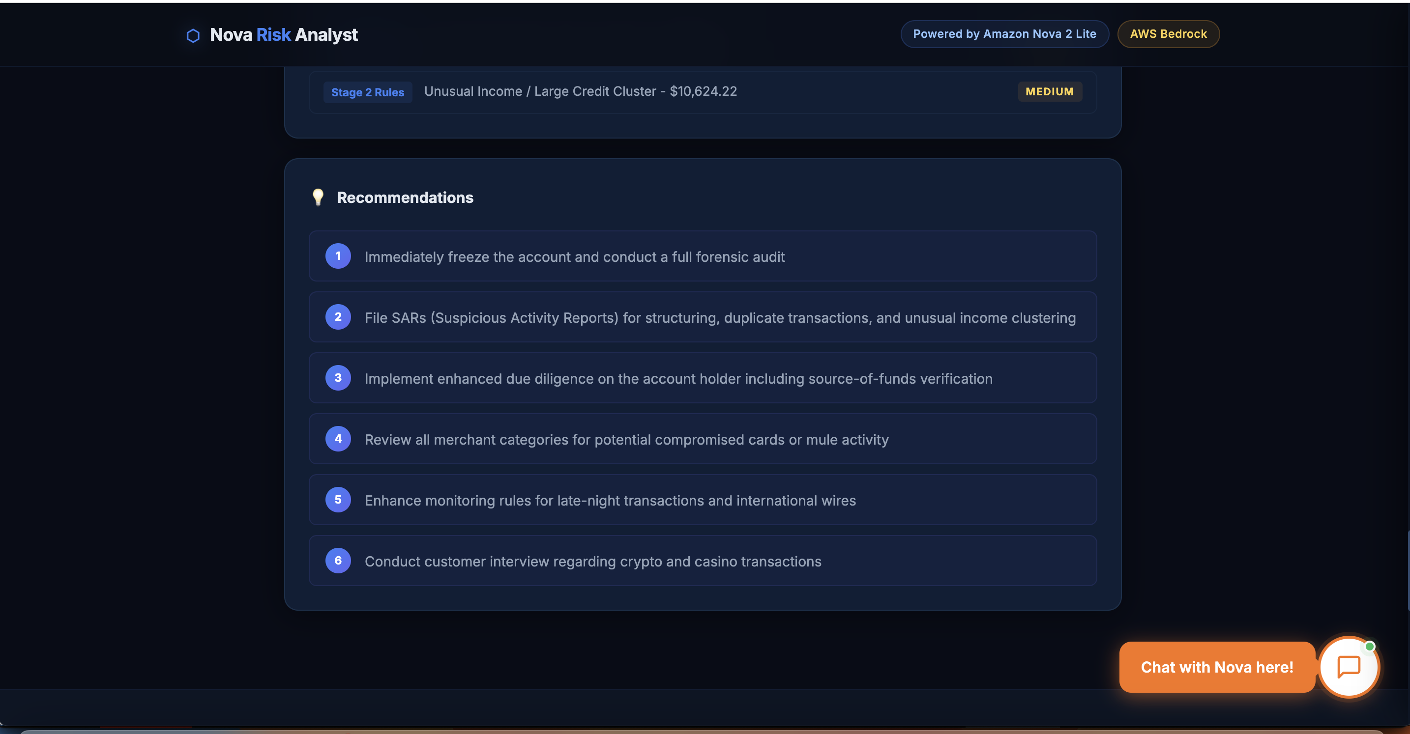 - Nova Act Integration: Automating the generation of Suspicious Activity Reports (SARs) directly into regulatory portals.