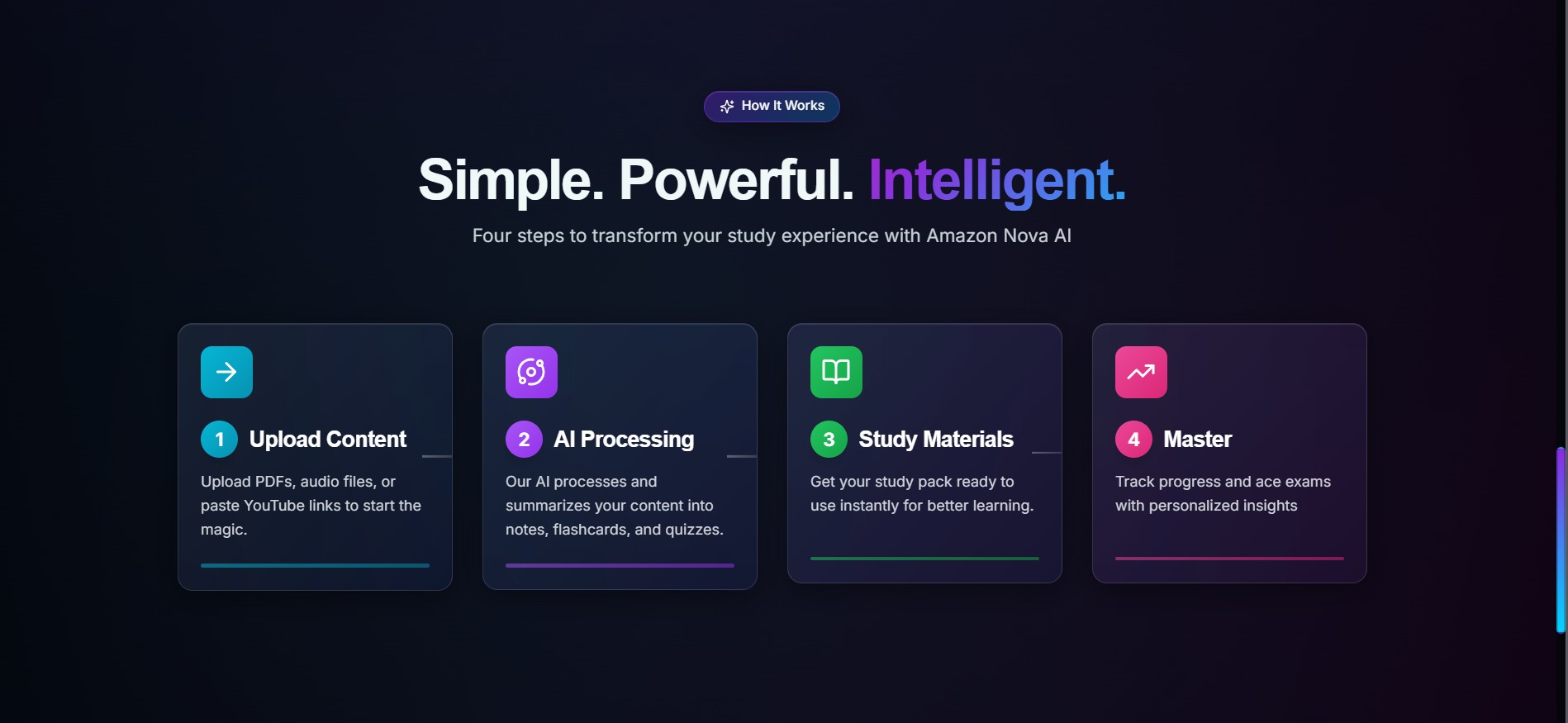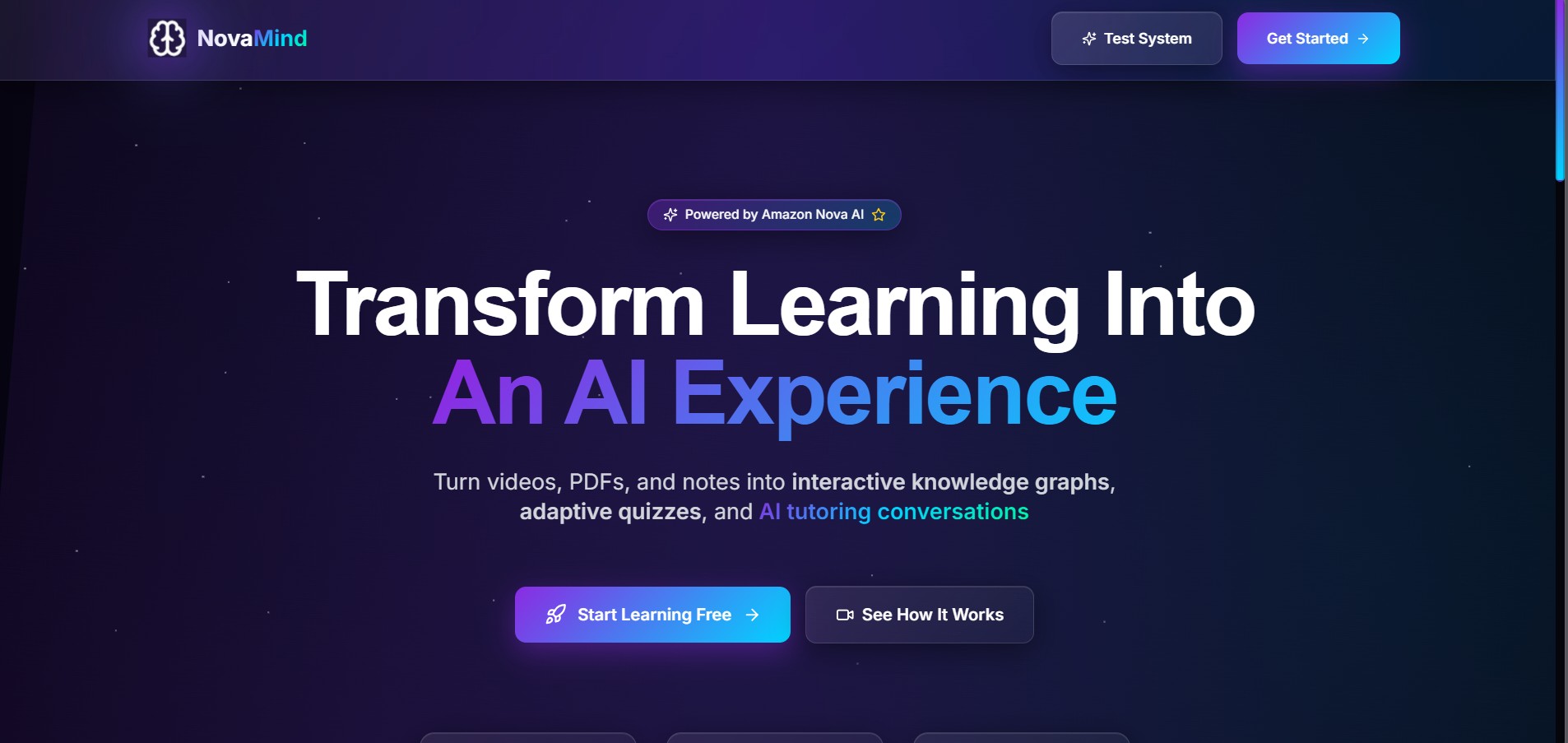 I wanted to build something that turns passive studying into active learning. Instead of treating lectures, slides, and notes as separate files, NovaMind treats them as one connected learning system. The idea was to use Amazon Nova's multimodal capabilities to help students upload raw study material and turn it into something searchable, explainable, and quiz-ready.