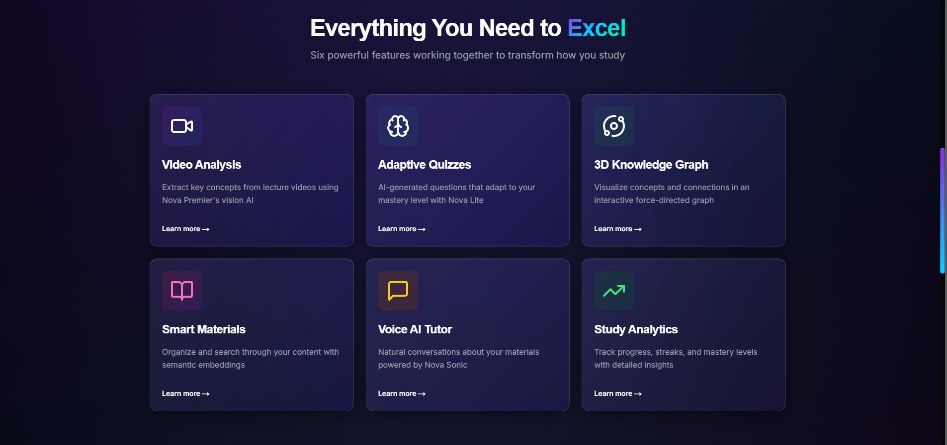 The larger goal is to reduce time spent re-finding information and increase time spent actually learning. In practice, NovaMind is meant to move students closer to a system where study effectiveness improves as their material grows, instead of becoming more chaotic.