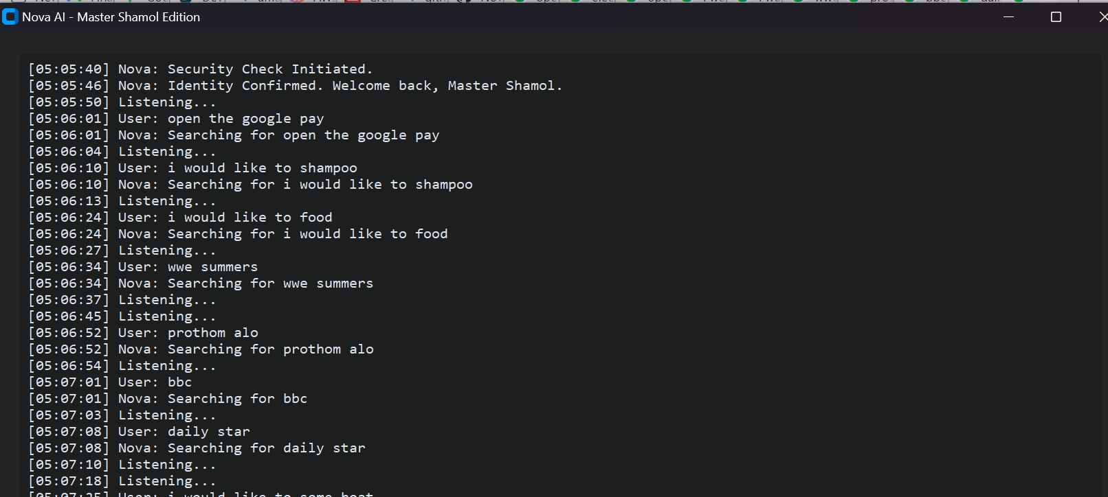 Memory & Personalization: Adding a local database so Nova can remember user preferences and past interactions, making the assistant truly personalized over time.