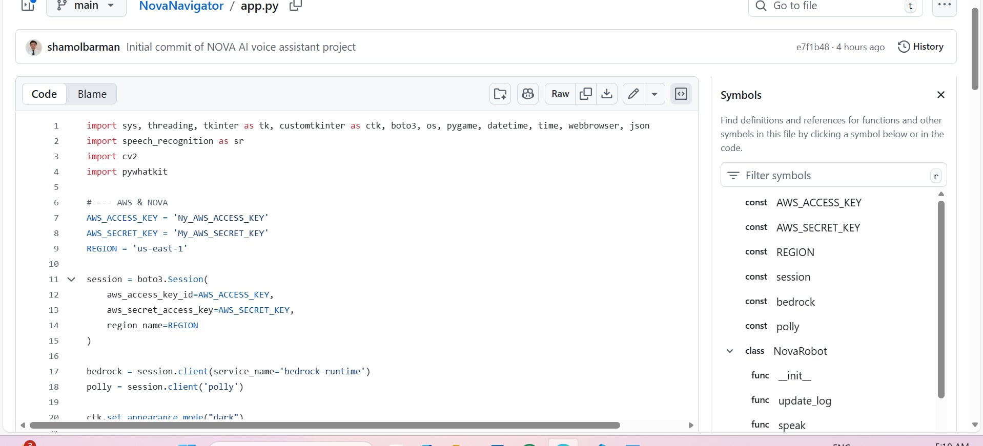 The inspiration for NovaNavigator comes from the gap between traditional AI chatbots and true autonomous agents. While most AI can provide information, they cannot "act" on the PC or web. I wanted to build a Virtual Assistant that doesn't just talk but executes tasks—like opening apps, searching the web, or playing music—using only voice commands. By leveraging Amazon Nova's advanced reasoning, I aimed to create a seamless, hands-free computing experience.