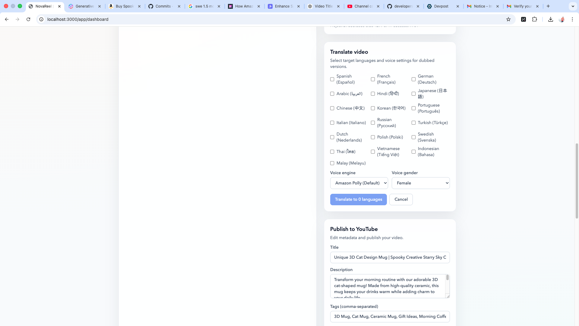 We are proud that NovaReel is not just a concept, but a working end-to-end product workflow. Users can upload product images, generate videos, review storyboards, translate outputs, create variants, and prepare content for publishing from a single interface. That makes the product feel practical for real sellers, not just impressive in a demo.