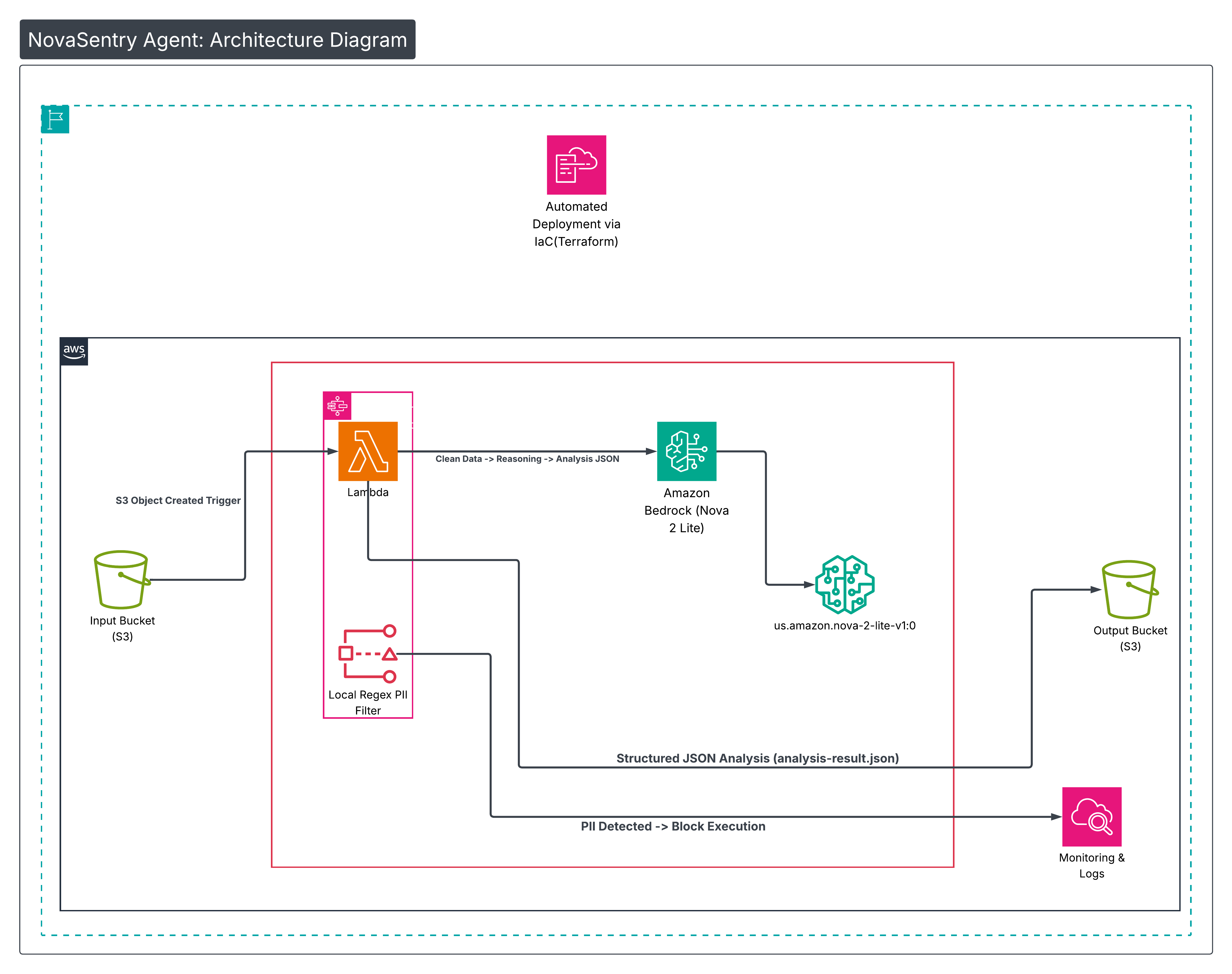Agentic Reasoning: If "clean," Amazon Nova 2 Lite reasons through the document to categorize its intent (Invoice, Legal, etc.) and provides a risk-aware summary.