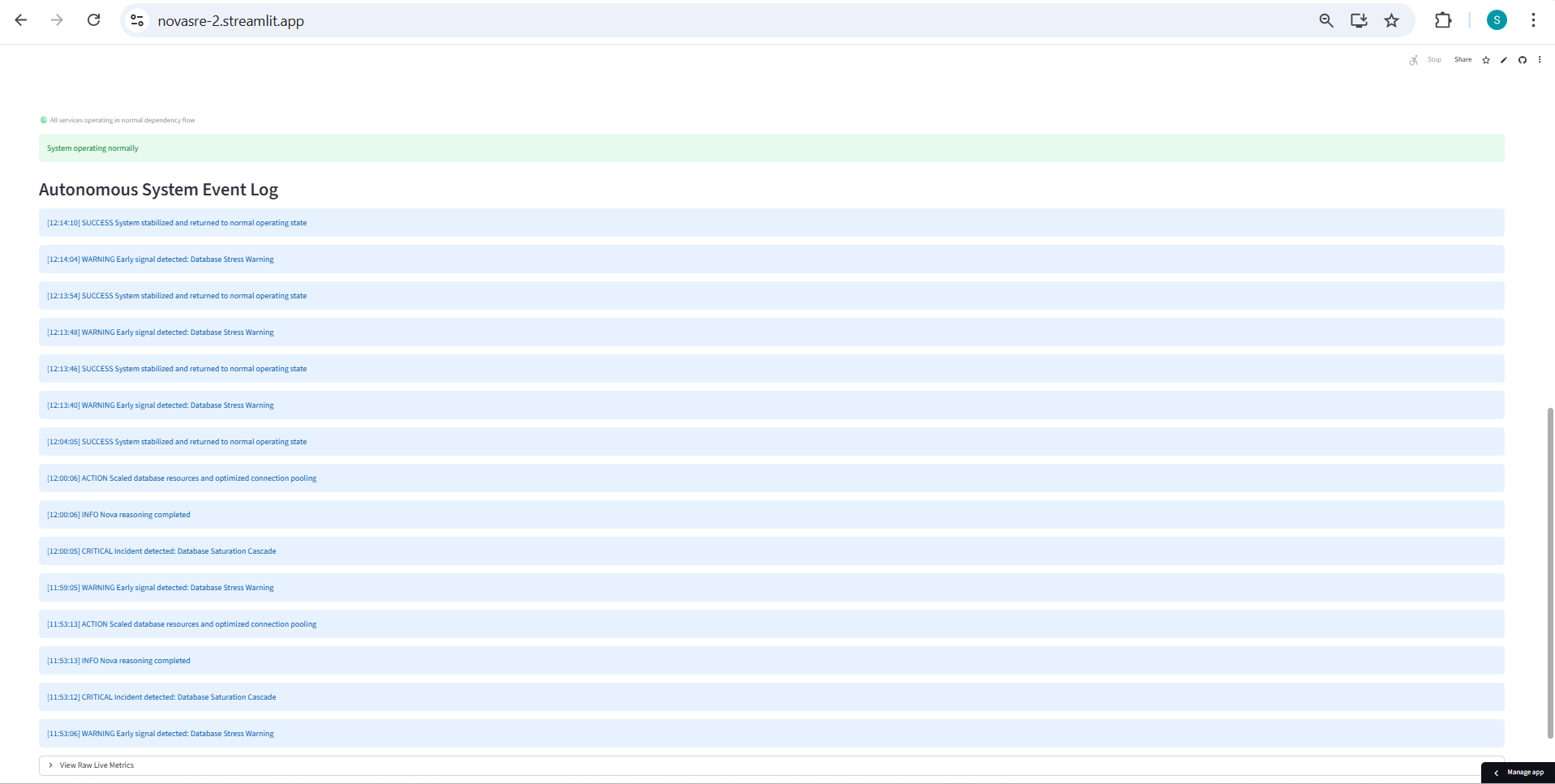 I’m proud that NovaSRE goes beyond basic monitoring and actually demonstrates autonomous infrastructure behavior.