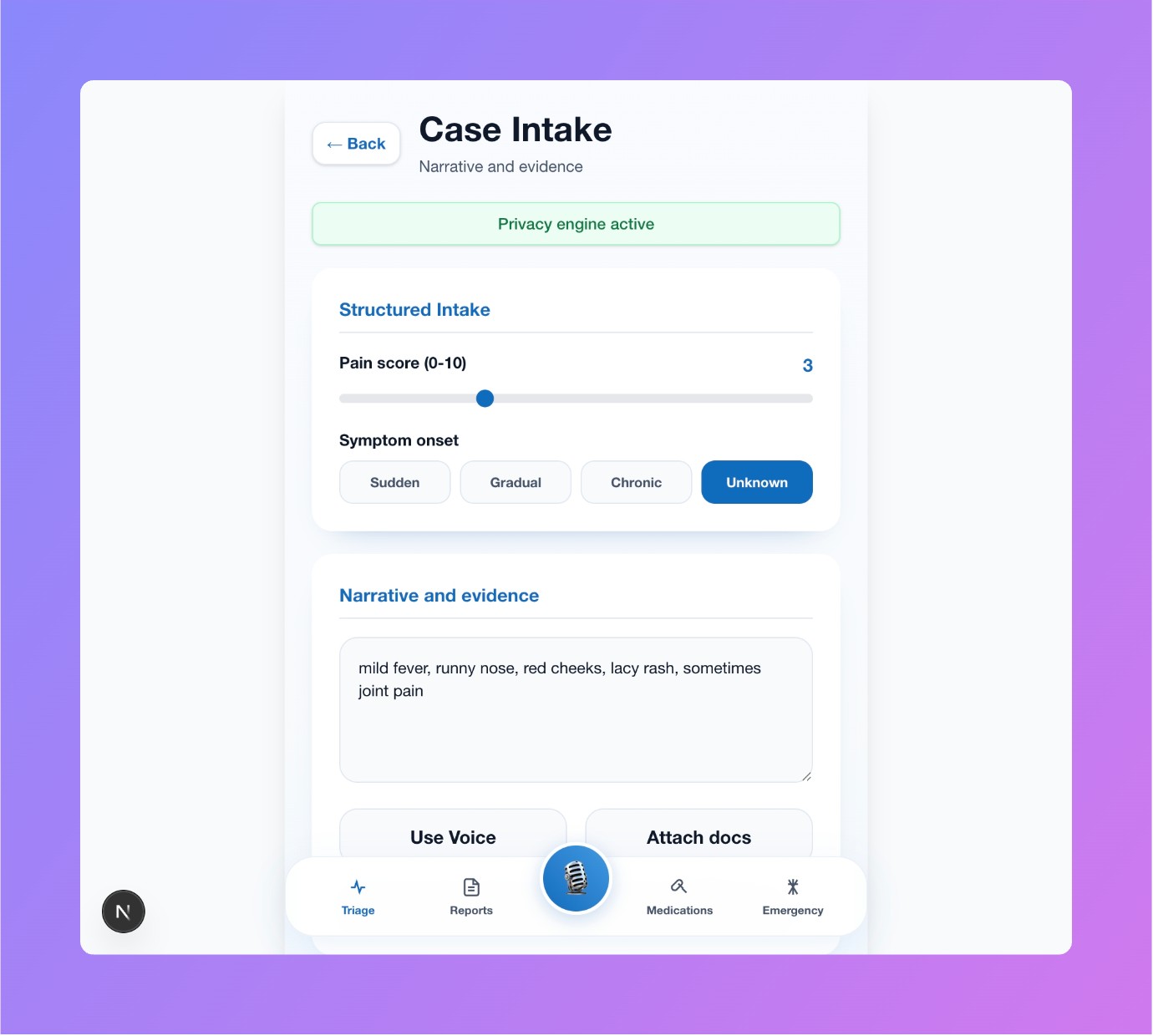 NovaTriage was inspired by the idea that AI could help structure this chaotic intake process while keeping privacy at the center. We wanted to explore how multimodal AI and agent-based reasoning could assist caregivers, clinicians but also normal peaple, by rapidly organizing symptoms, detecting potential red flags, and generating a clear handoff summary—without attempting to replace medical judgment.