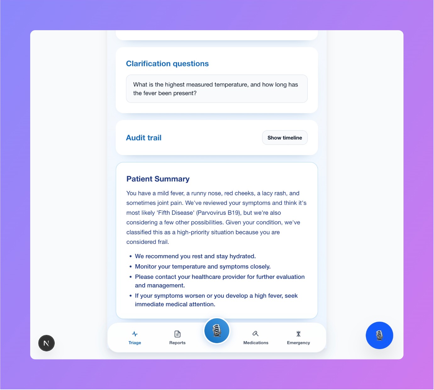 - Describe patient symptoms using voice or text