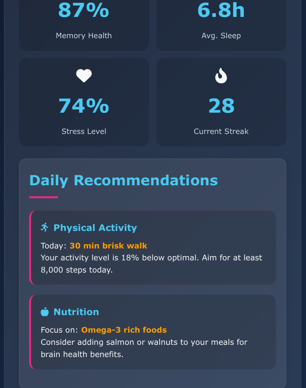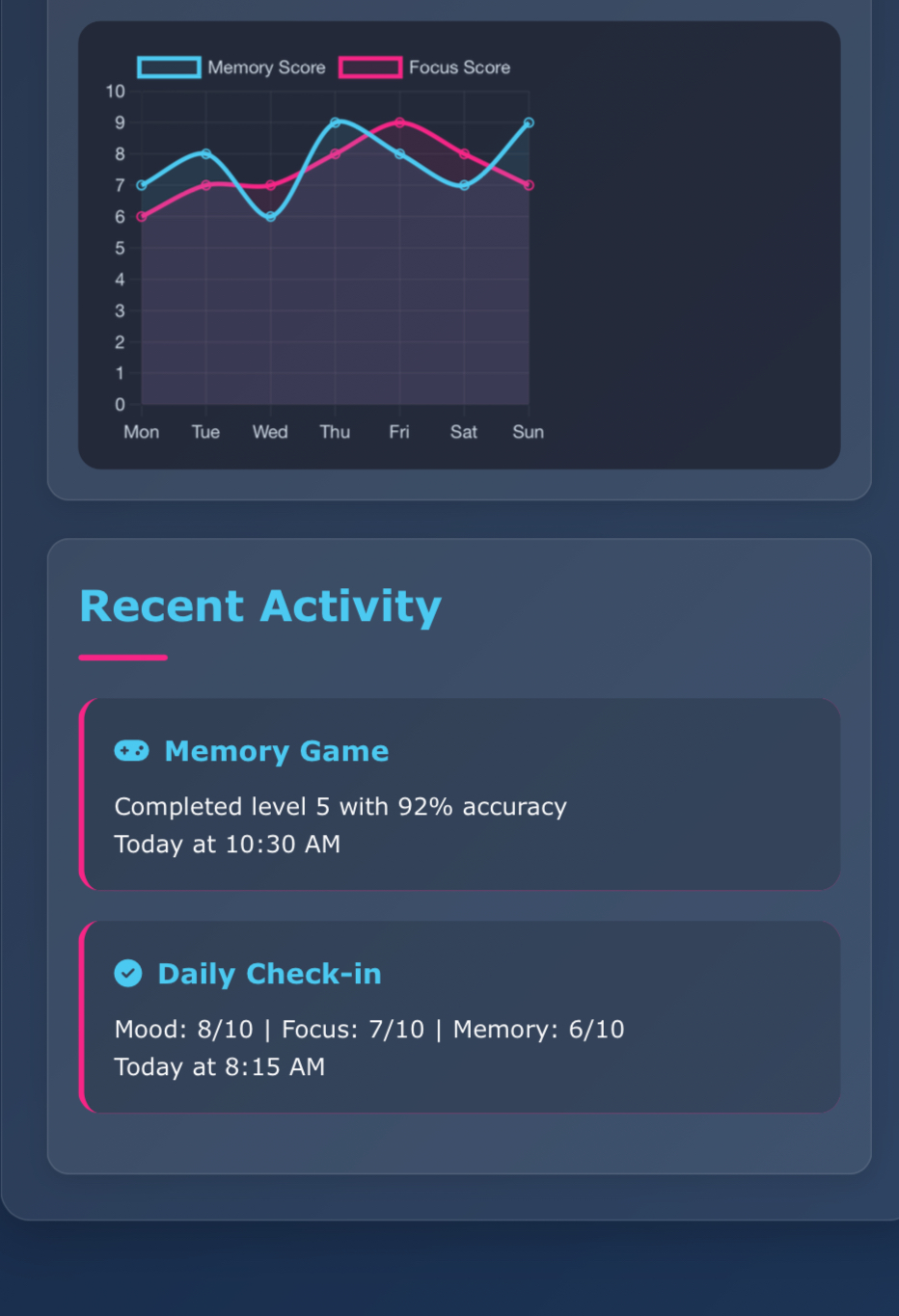 Delivered a clean, well-documented, and fully deployable MVP within a tight timeline. NeuroX combines neuroscience principles with an engaging user experience, setting it apart from generic brain games. The app’s privacy-first approach and visually intuitive progress charts highlight its innovation and usability.