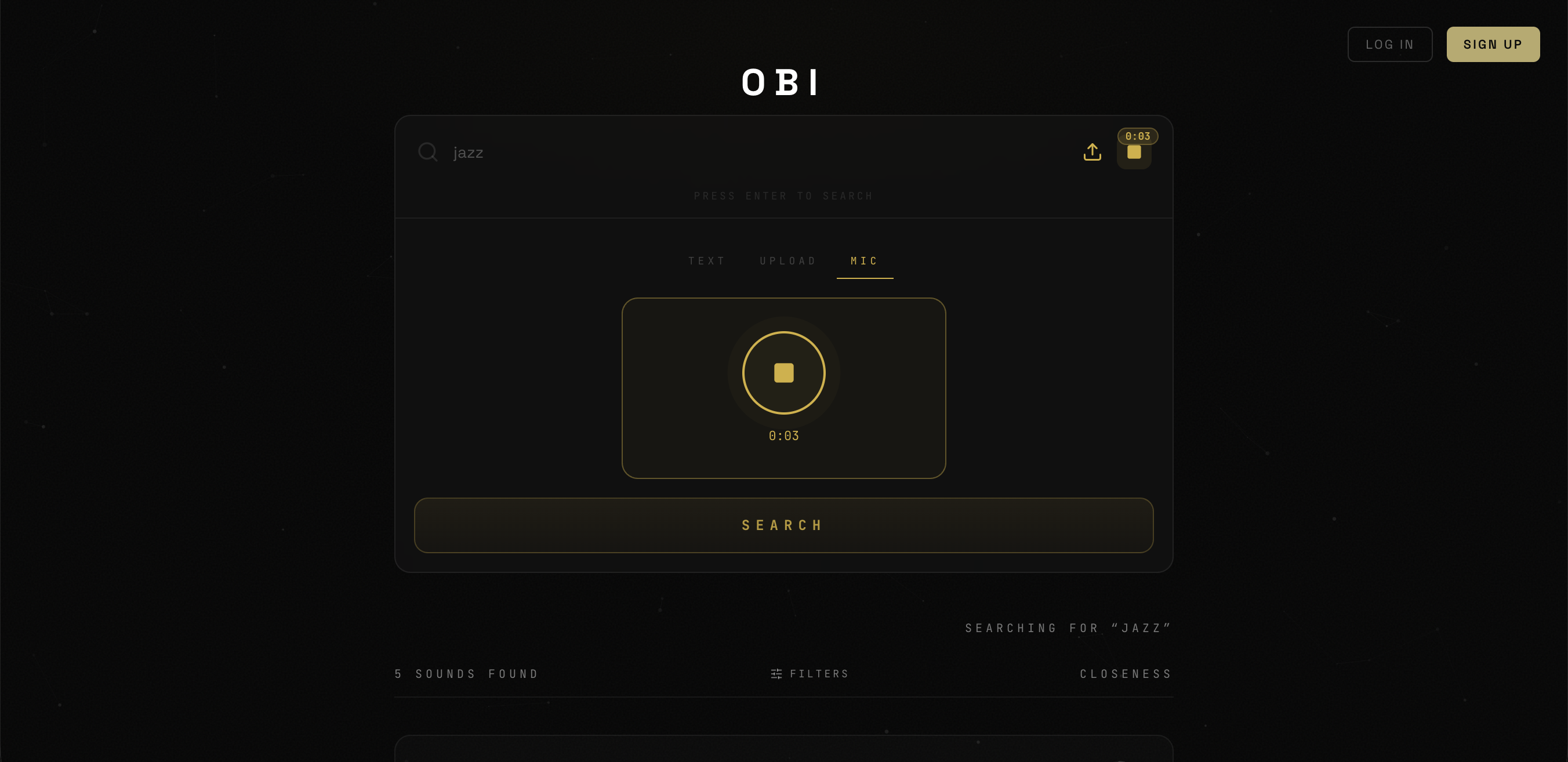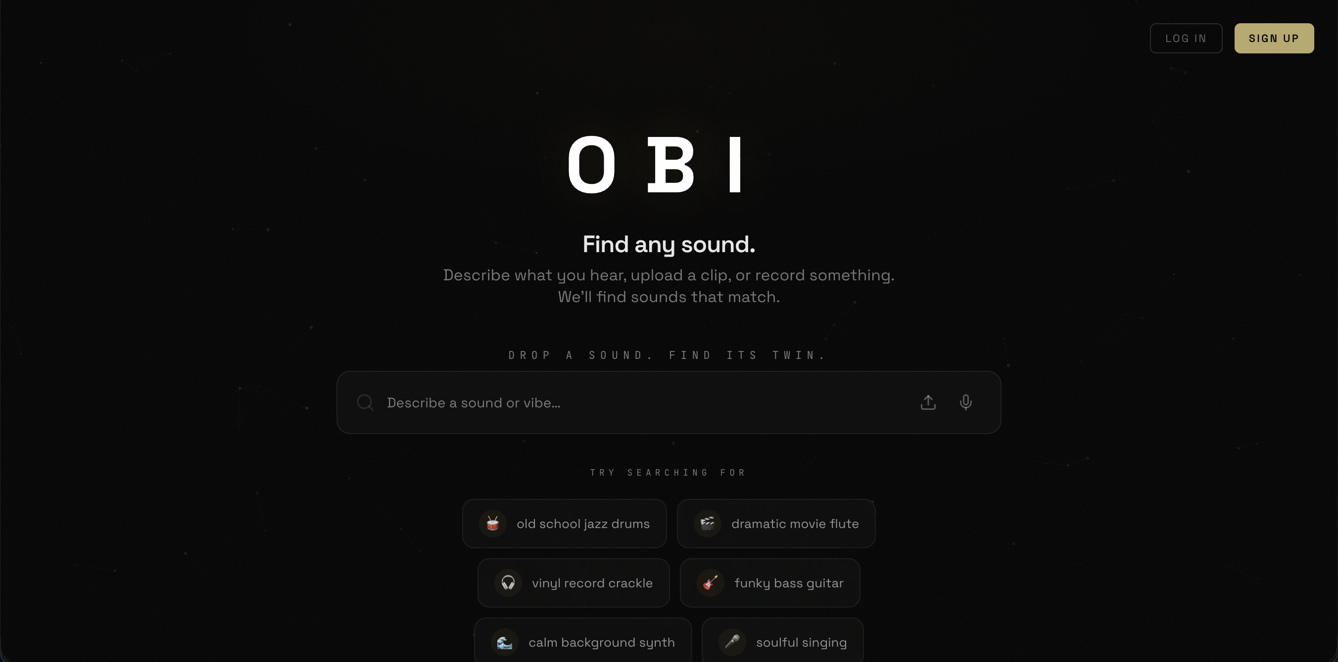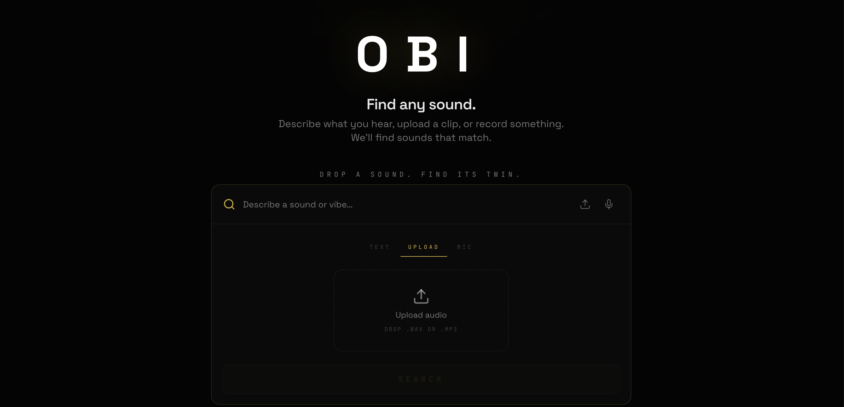 OBI is a multi-modal sonic search engine built for producers, sound designers, and sample hunters.