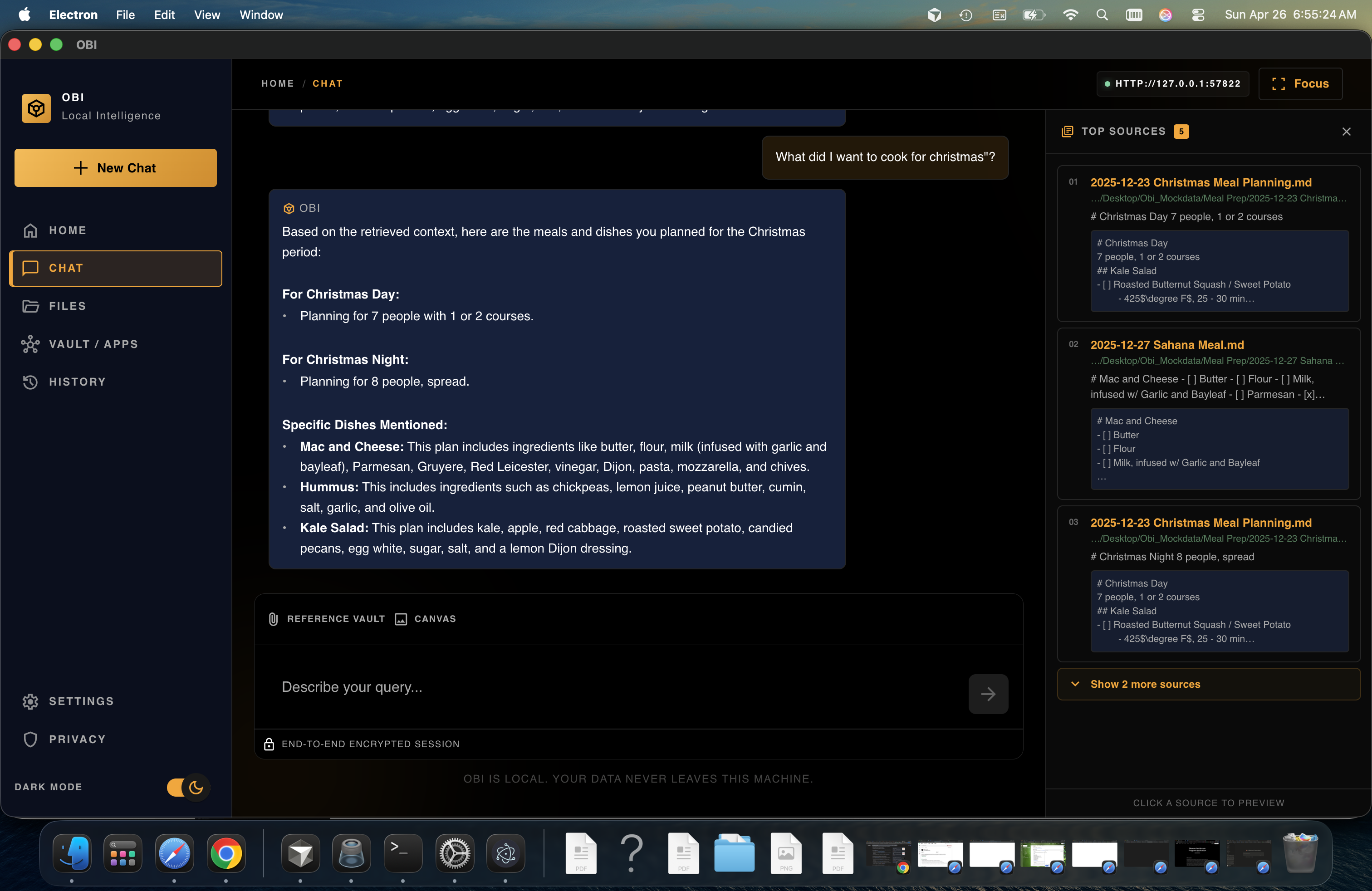 Instead of searching manually, you just ask. Obi retrieves exactly what you need.