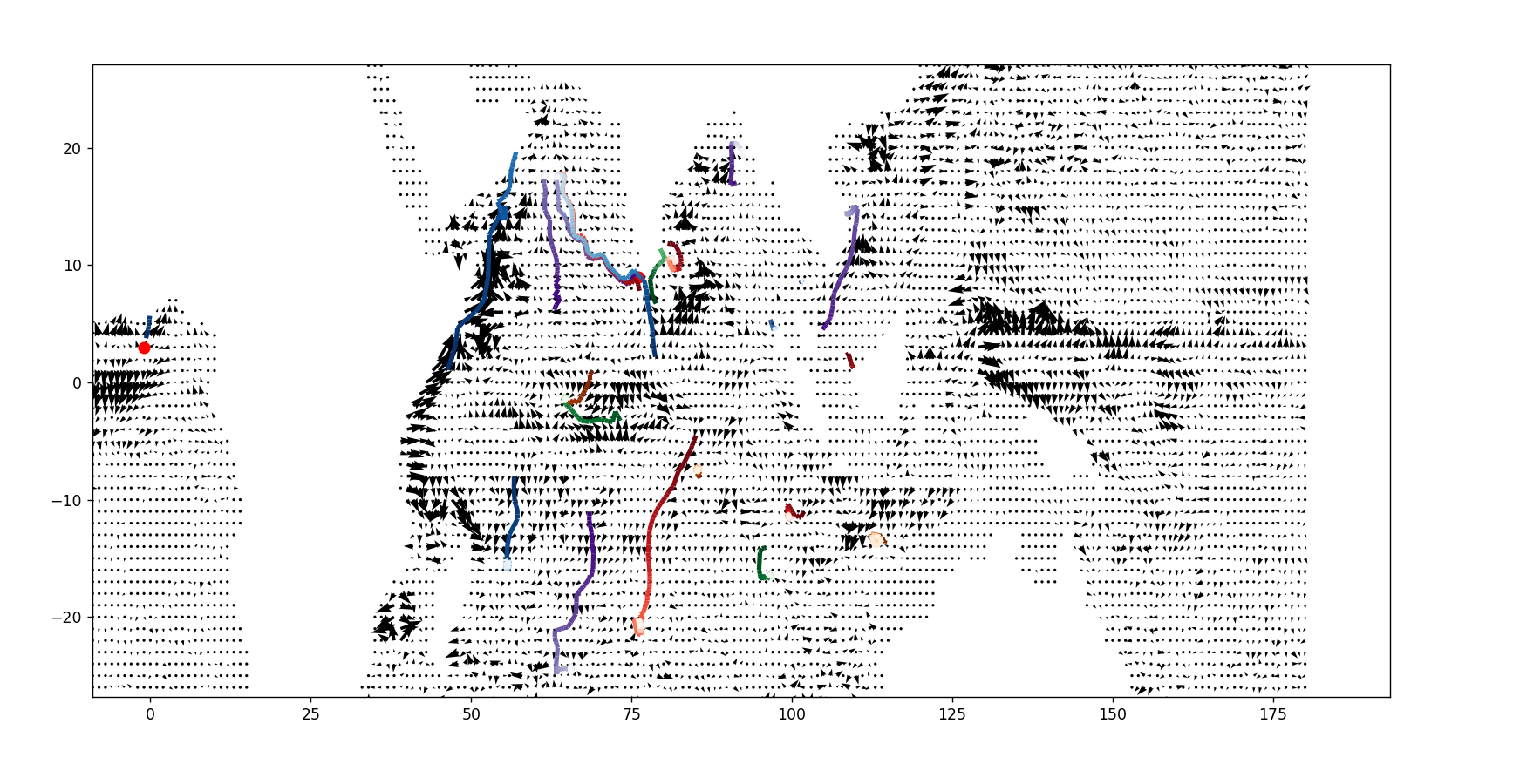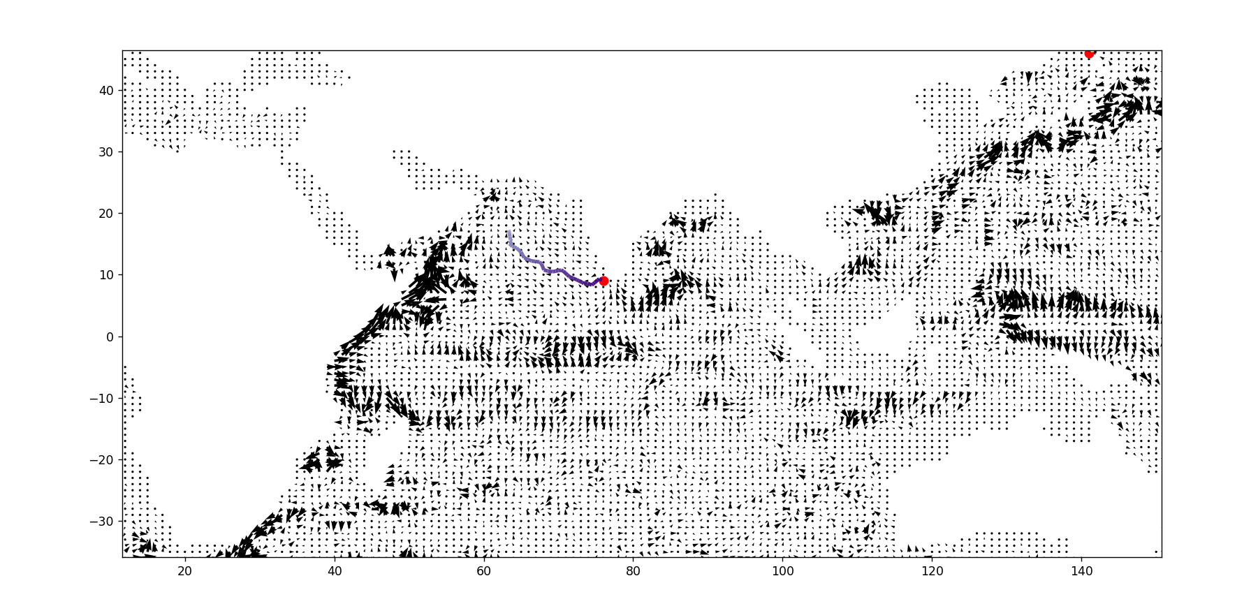 I faced numerous challenges while building this. One of the main challenges I faced was finding a way to plot the world’s ocean currents without using too many resources so the simulation runs quickly. I finally concluded using the matplotlib library’s quiver plot function, which presented as the most appropriate option. Another one of the issues was finding data in a suitable format. After trying numerous data sets, some being unorganised, some having heavy excess info. I finally decided to go with meteomatics’ data which provided comprehensive data in a suitable csv file which was easy to index.