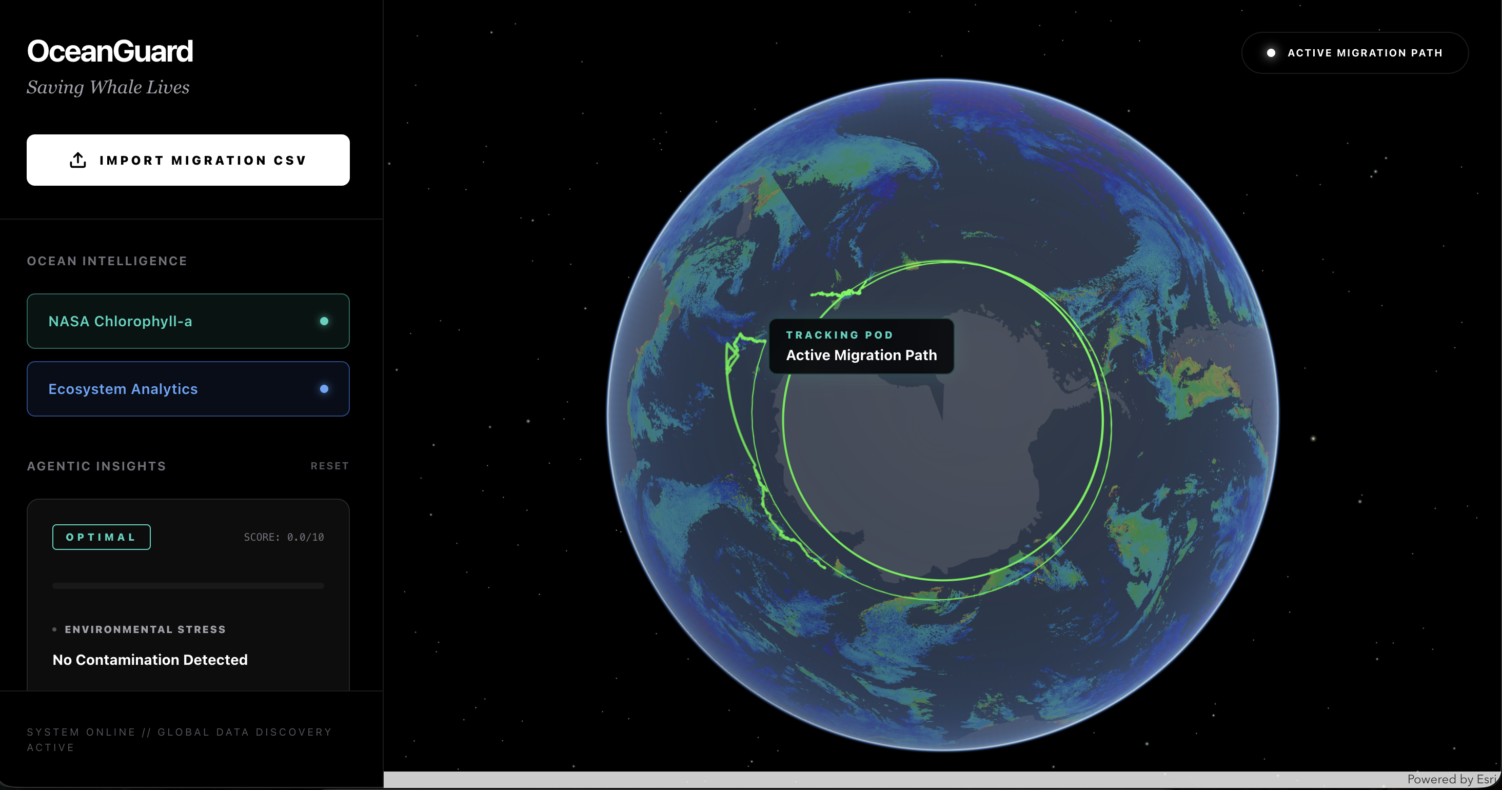 - Visualizes Ecosystem Stress: Integrates NASA Chlorophyll-a data and global contamination zones.