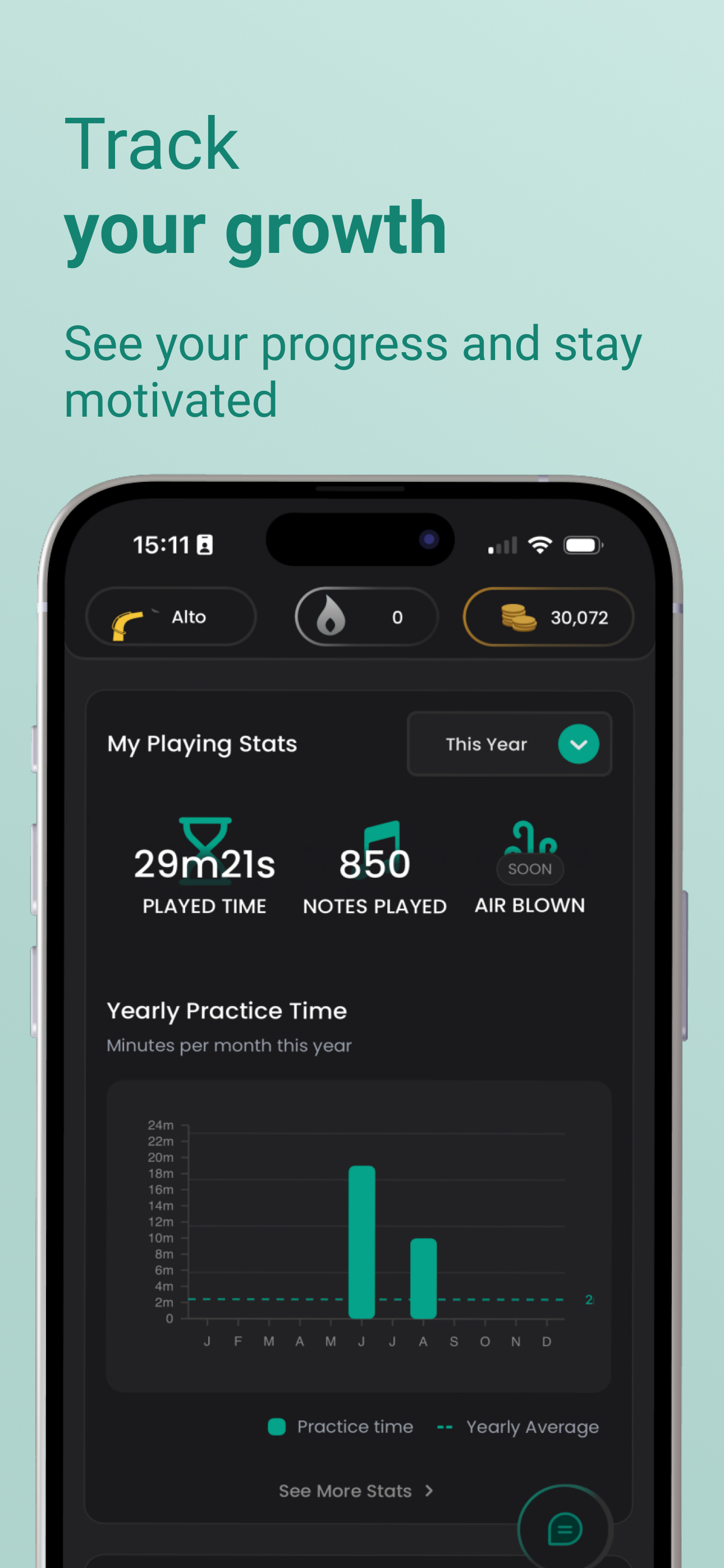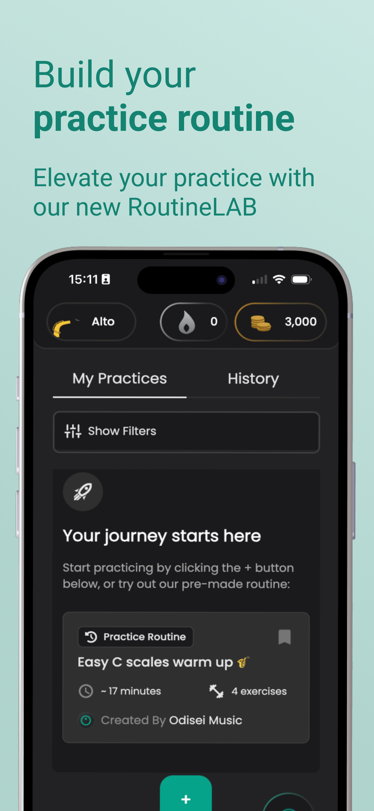 - My Odisei: your personal hub to set goals (small and big), track streaks and milestones, dive into rich analytics, and connect with your instruments. It shows you not just what you played, but how far you’ve come and where to go next.