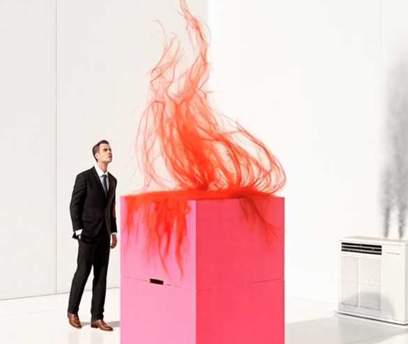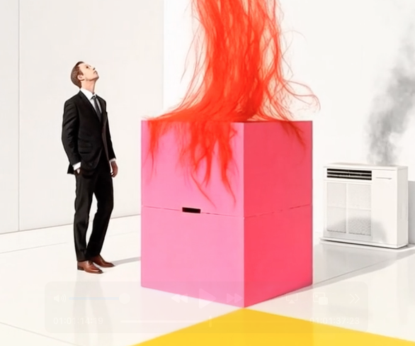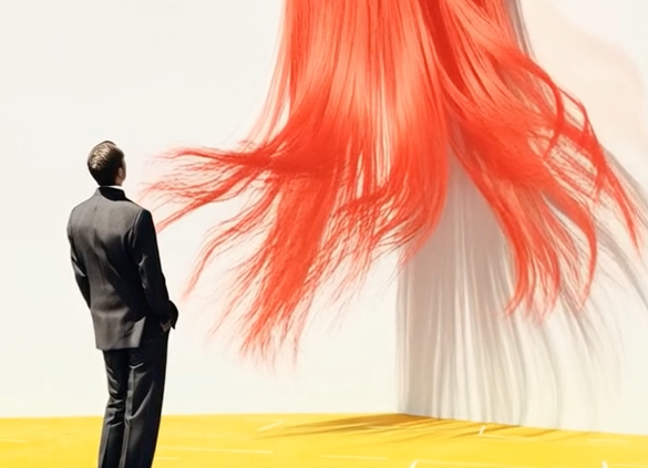 Our inspiration stems from Surrealism (Magritte, Dalí, Jeffery Smart) and Corporate Dystopian themes (like Severance or The Truman Show). We wanted to use the clean, alienating aesthetic of a modern office space and disrupt it with objects of pure, irrational energy—the red cubic sculpture and flowing hair. This film is designed to make the familiar world of work feel unsettlingly strange, revealing the emotional chaos beneath the professional facade.