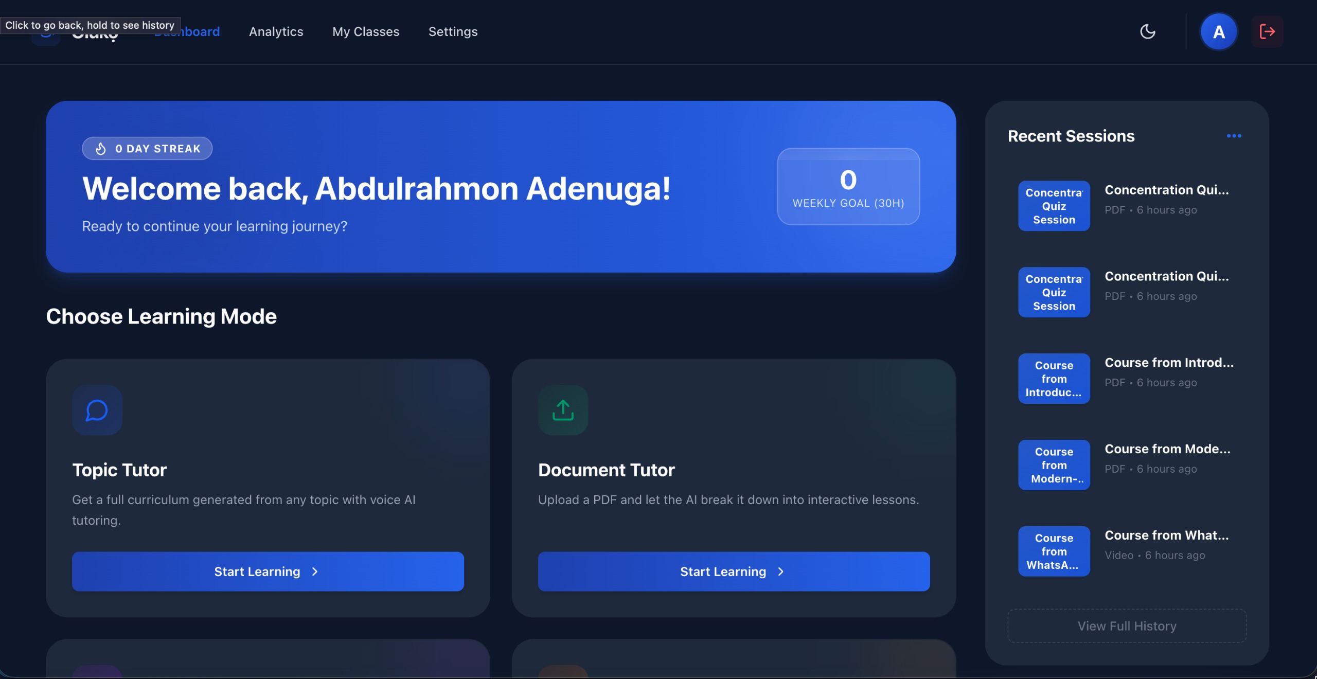 - Built a fully functional, voice-first AI tutor in 15 days from zero to a working product with course generation, live voice interaction, an interactive whiteboard, and study analytics