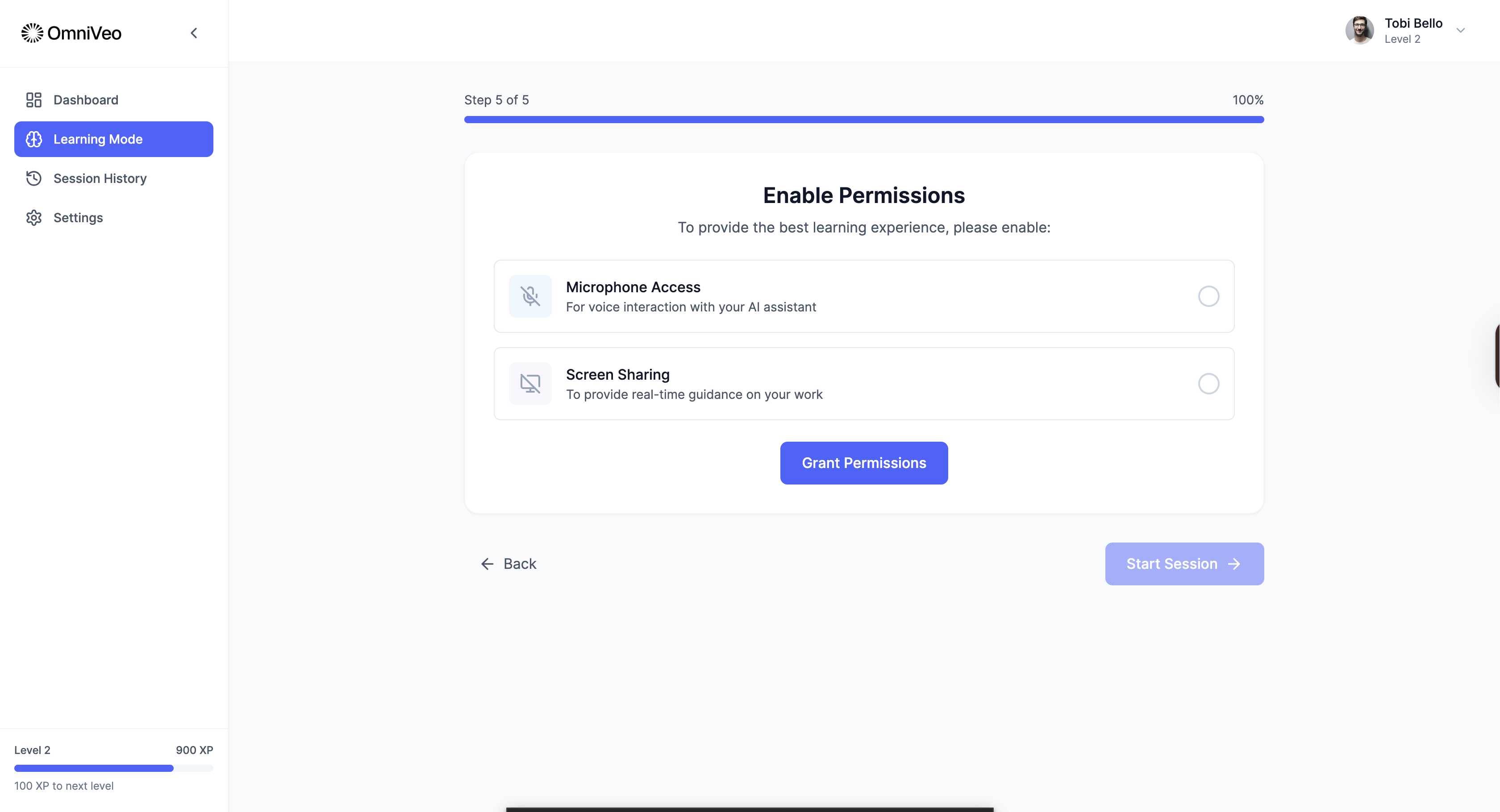 - User grants screen + mic access → Learning session begins