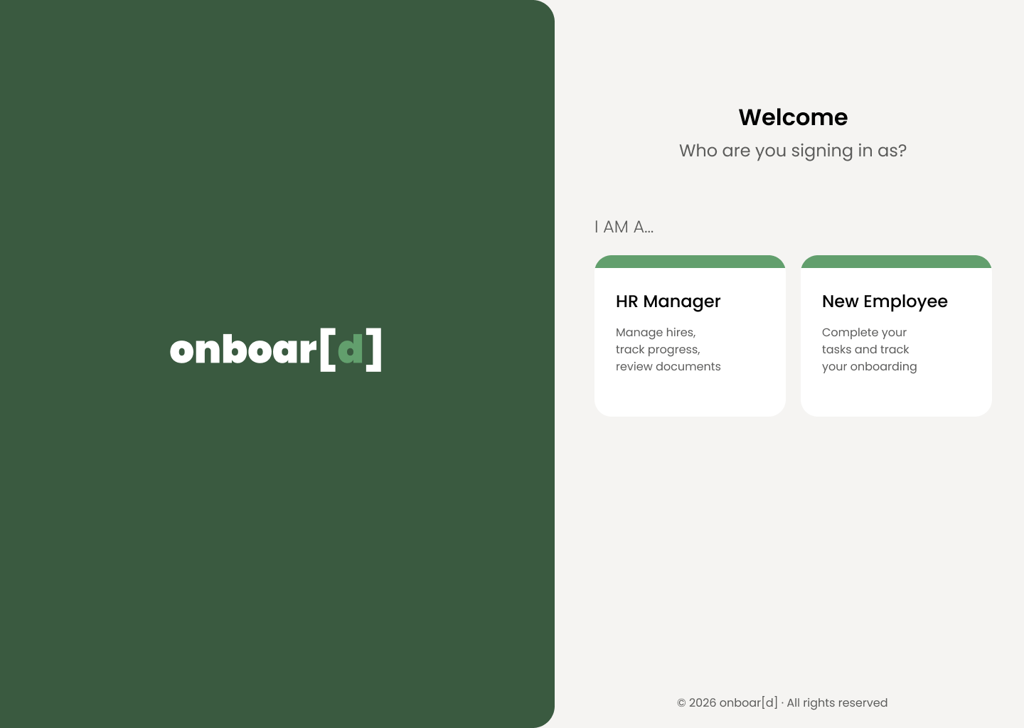 Working on onboar[d] showed us how important it is to design for two very different users at the same time. Balancing what HR managers need (visibility, control, and quick action) with what new hires need (clarity, reassurance, and a sense of direction) was harder than we expected and pushed us to be more intentional about every design decision we made.