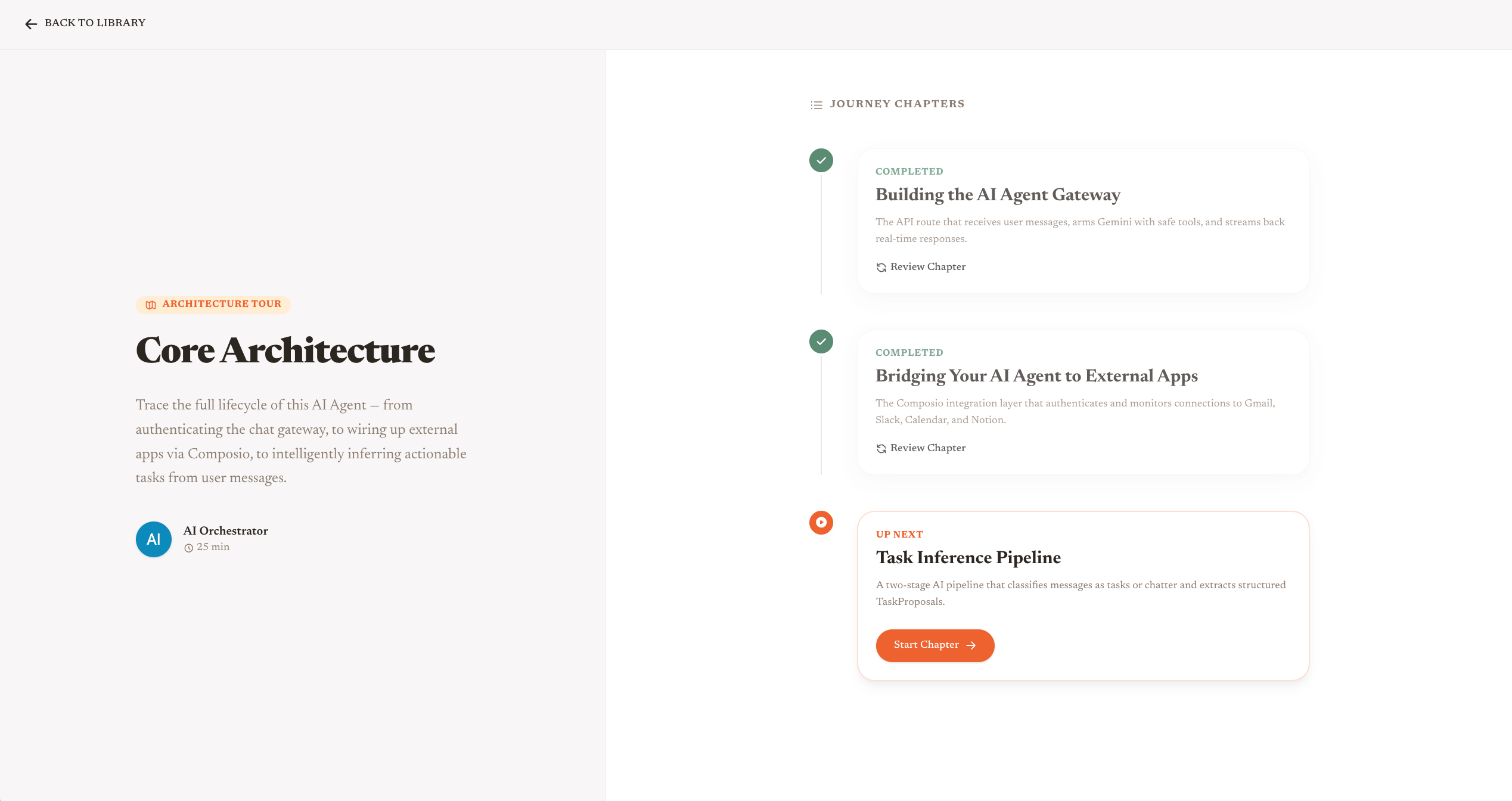 Onboard is a multi-agent platform that dynamically converts complex software repositories into interactive, narrative-driven documentation. It utilizes a specialized suite of agents to analyze repository structures, craft educational narrative chapters, and generate corresponding quizzes to assess a user's understanding of the code.
