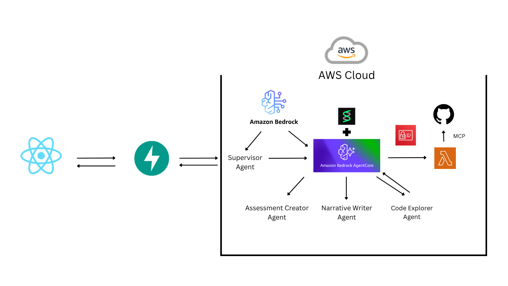 Specialized Sub-Agents: We deployed three distinct A2A workers: a Code Explorer to fetch GitHub source code via Lambda, a Narrative Writer to craft educational content, and an Assessment Creator for dynamic quizzes.
