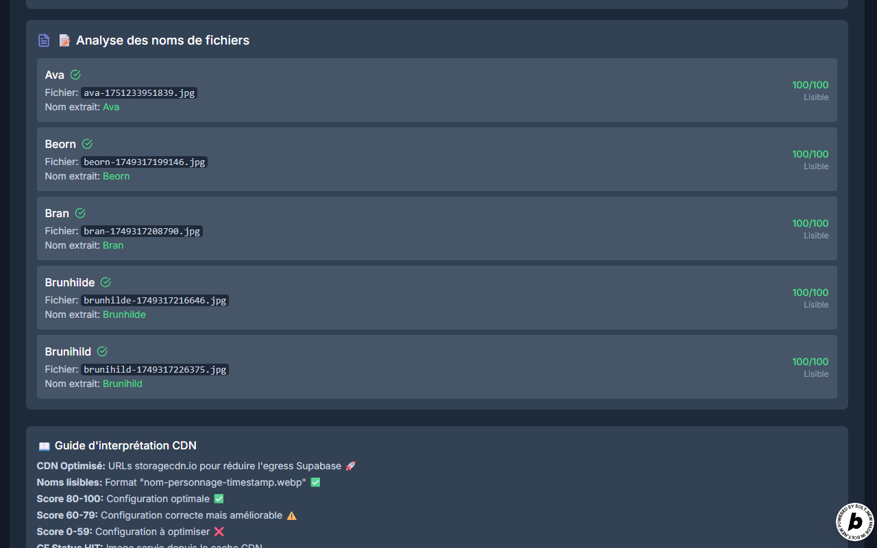 useAuth: manages login, logout, role checksImagesProvider: context for characters, Supabase sync, uploads, deletesuseEnums: fetch ENUM values (race, culture, etc.)imageCompressionService: compresses images with browser-image-compressioncache-analyzer.ts: tests CDN headers + busting logic