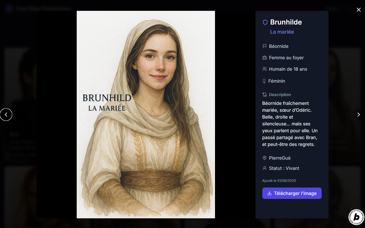 - 🖼️ Public Gallery with character portraits, names, and quick bios